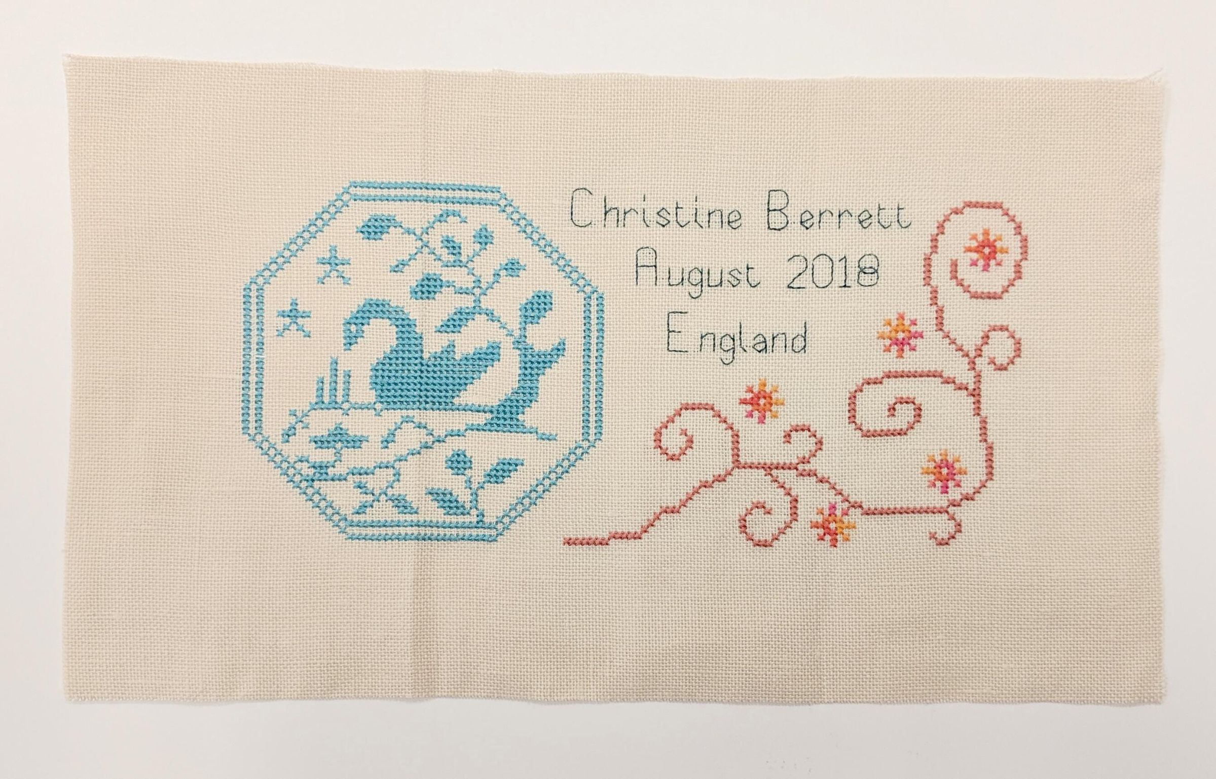 Quaker lozenge stitched on 28 count evenweave fabric; cross stitch and backstitch in Madeira threadCollection