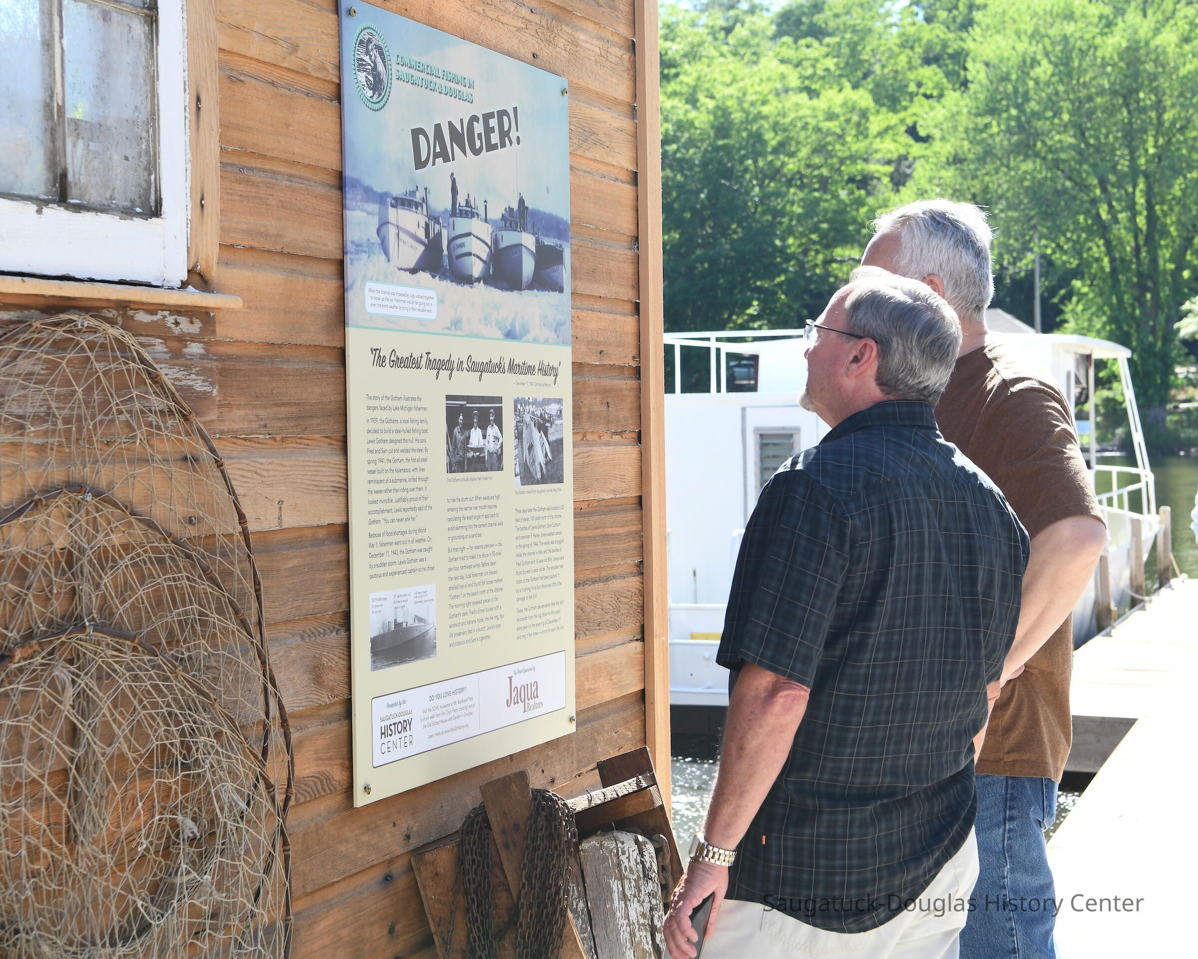 Group shot by Kim Zahnow of descendants of Saugatuck's fishermen. From left to right Betty (Rastal?), Lori Sluis, Kevin Sluis, David Demerest, Jeffrey Peel, John Peel, Renie Rastall, Rita Rastall, Lou Hebert, Marilyn (Demerest) Hebert, Bonnie (Sewers) Kozanecki, Sharon, Betty (Sewers) Rasmussen, Dick Sewers, Pat Diepenhorst, Kathryn (Dekker) HanleySubject Person or Organization