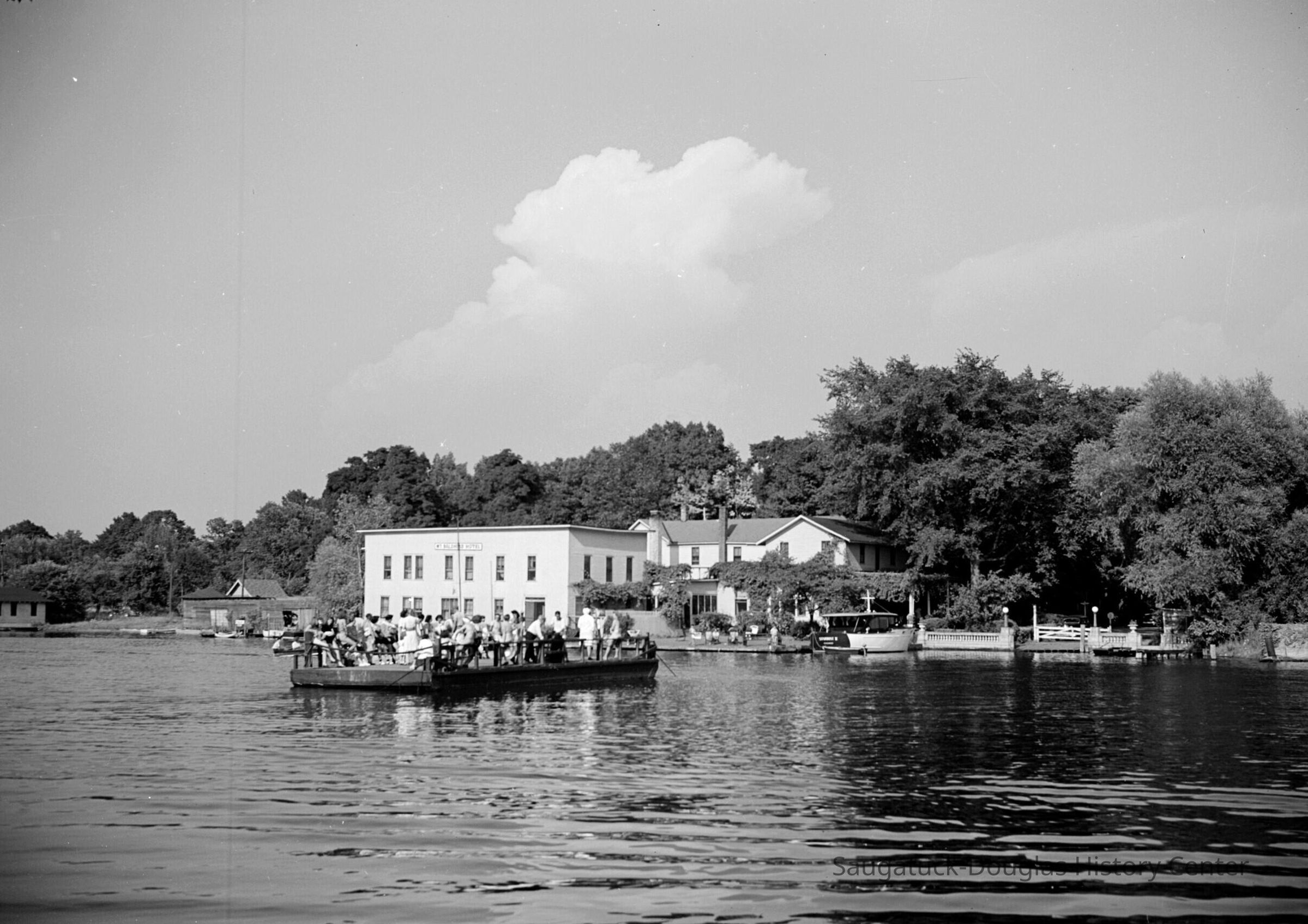 693 0/2 Saugatuck - ferry 8/12/1945 Chain ferry, Tourist Home in background
