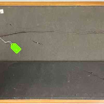 On the back of the brown wood frame is a black paper pocket [empty] and a label that reads "$650" of unknown origin. The painting is behind glass.Type of Painting
