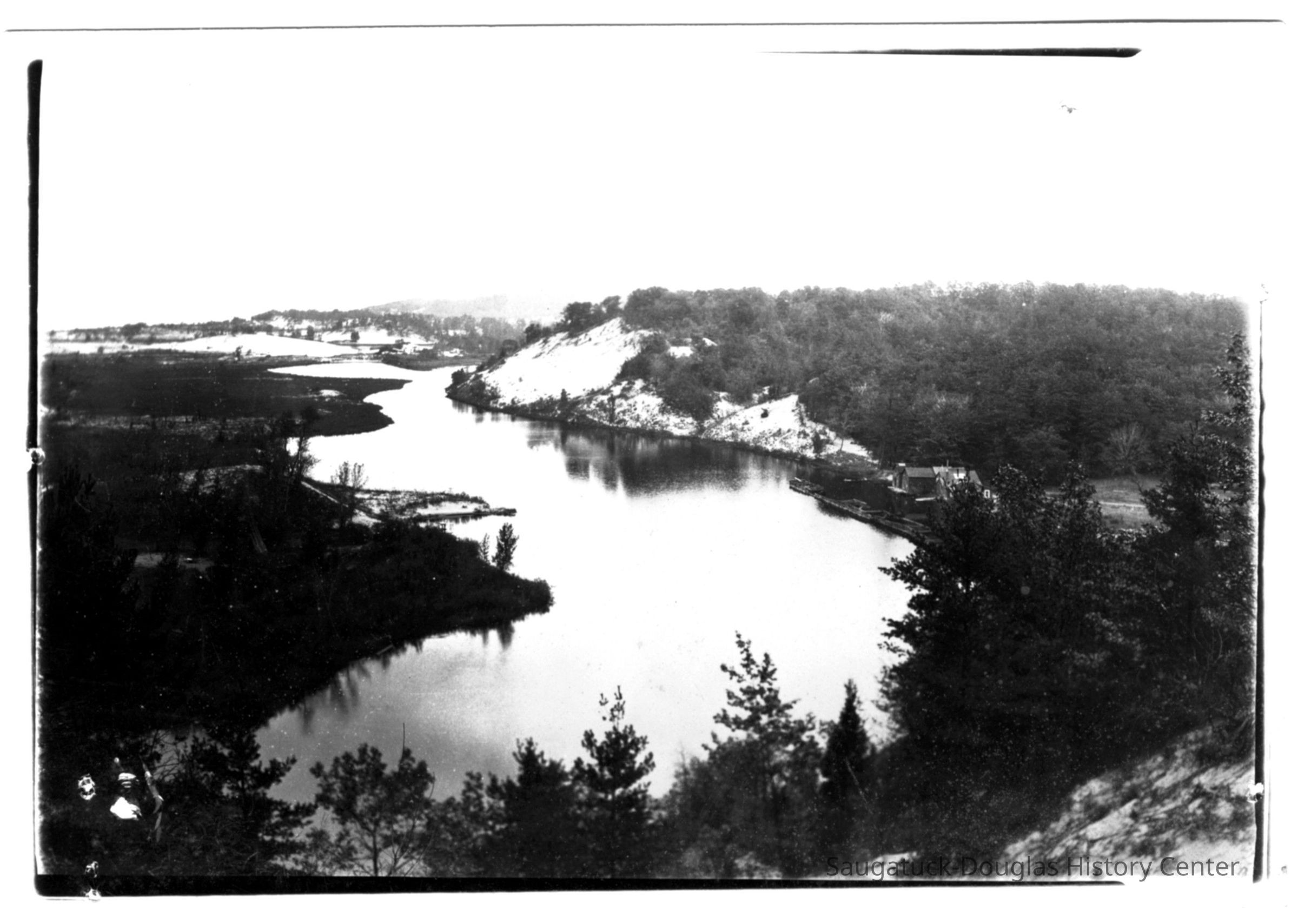 Photo taken from the high dunes south of Ox-Bow/Shriver's Bend that shows the Crow's Nest dune. Fishtown and the Saugatuck Lighthouse would be to the lower left.Photograph Details