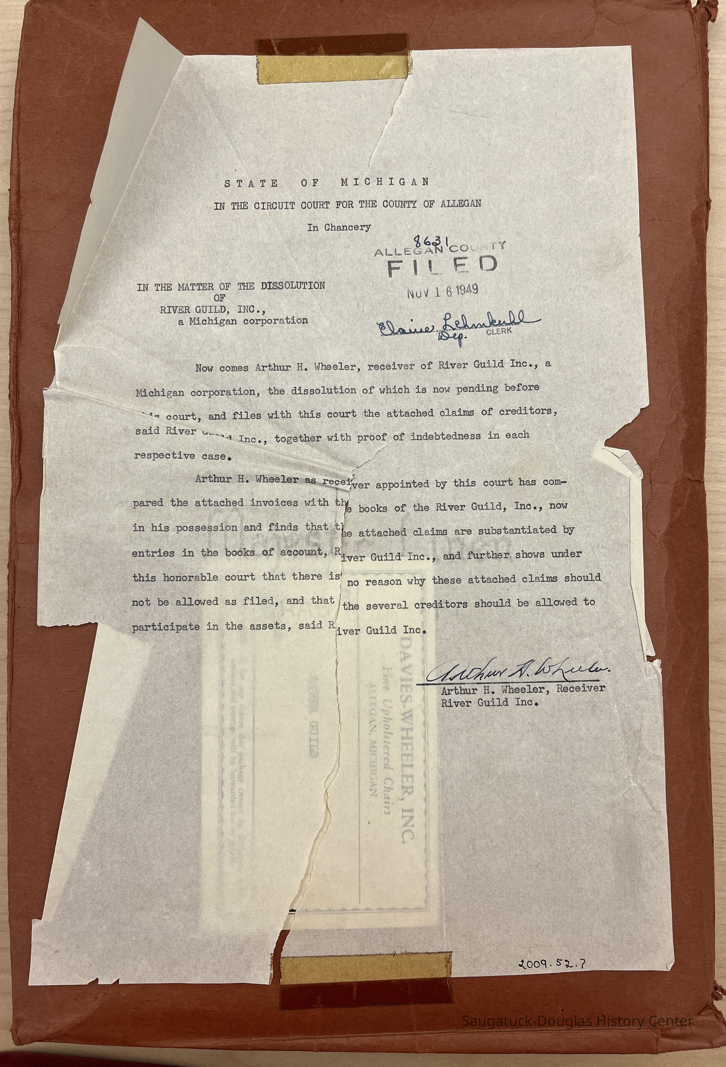 In the matter of the Dissolution of the River Guild, Inc. - a Michigan Corporation 2 foldersCollection