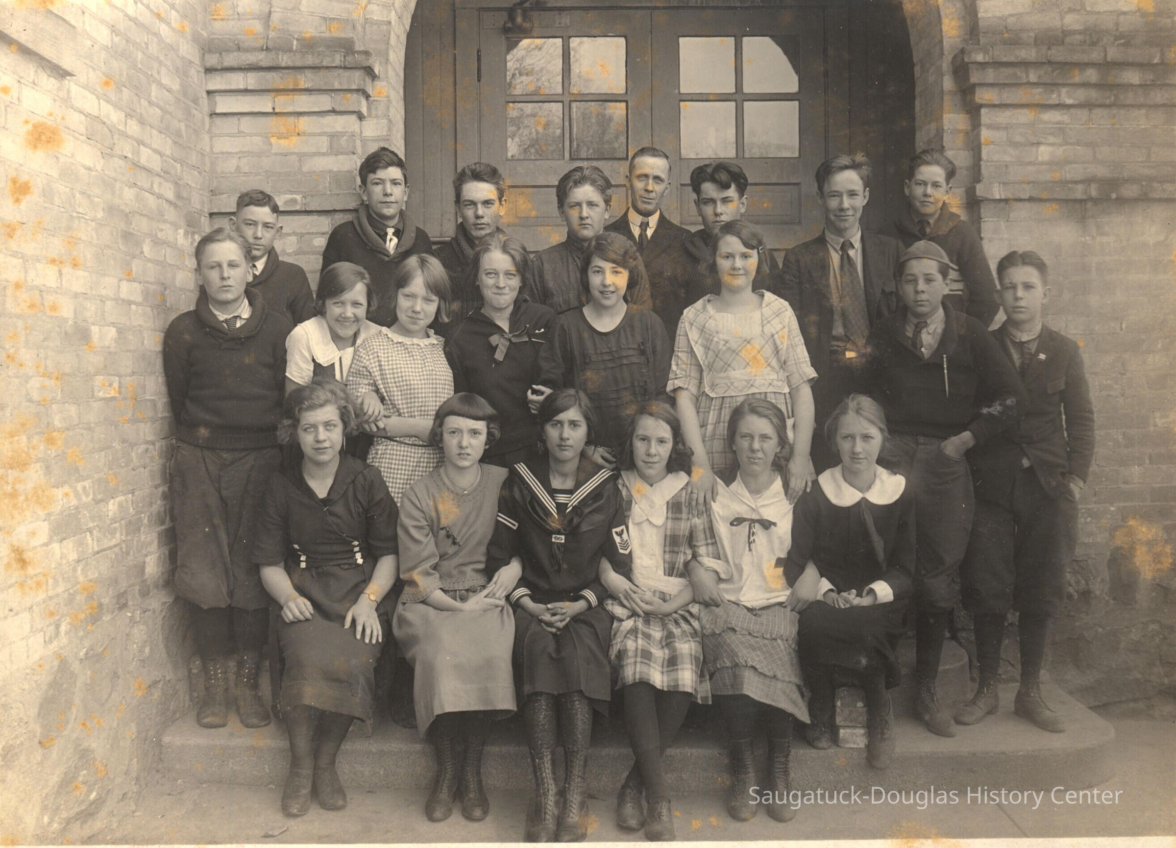 Photograph of students at Saugatuck School including Grace Wark (b.1909) 2nd from left bottomPhotograph Details