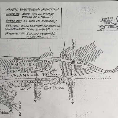 Photocopy of a 12-page inventory form for the 1869s Ox-Bow Inn (aka Shrivers Inn or Riverside Hotel) for the Michigan History Division of the Michigan Department of State prepared by Rita Walsh in July 1979.