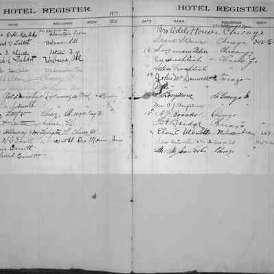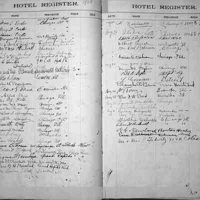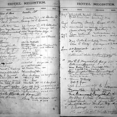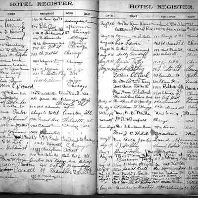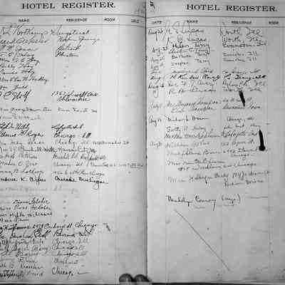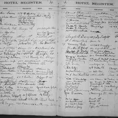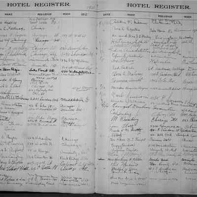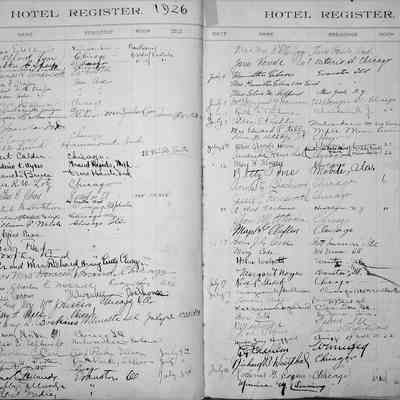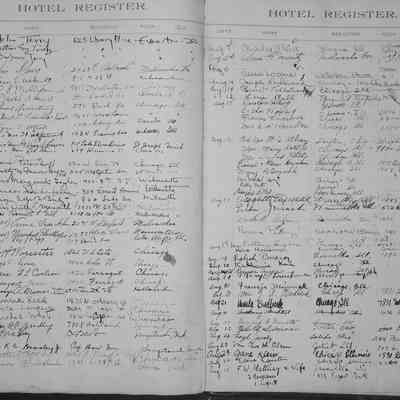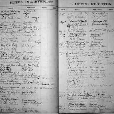 Photographs of the Ox-Bow Inn lodging register pages from 1914 to 1944. The photos were taken in June 2004 when the register was on loan from the archive of the School of the Art Institute of Chicago.Context