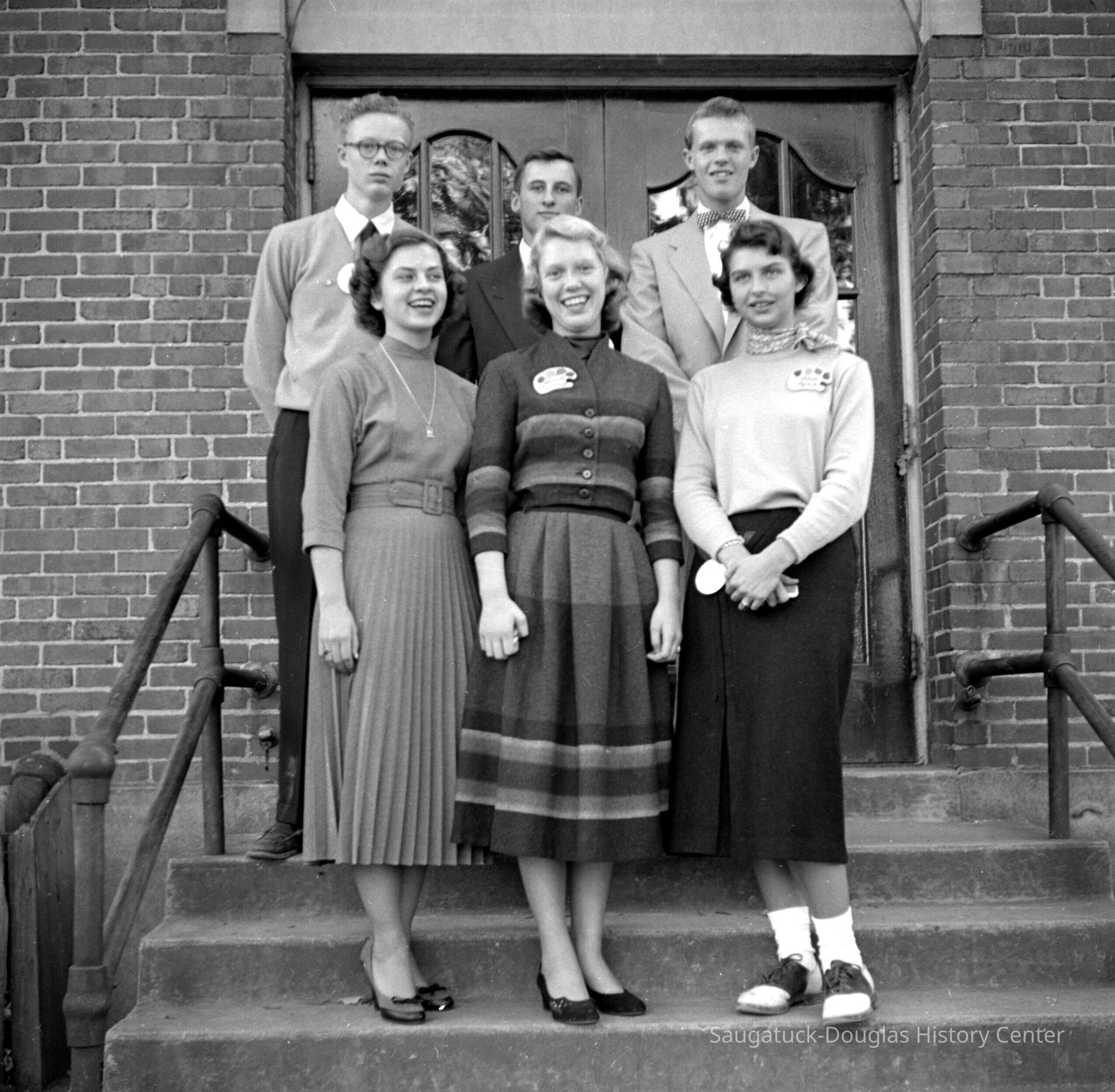108 0/6 Saugatuck - Schools 1952 Student Association on school steps