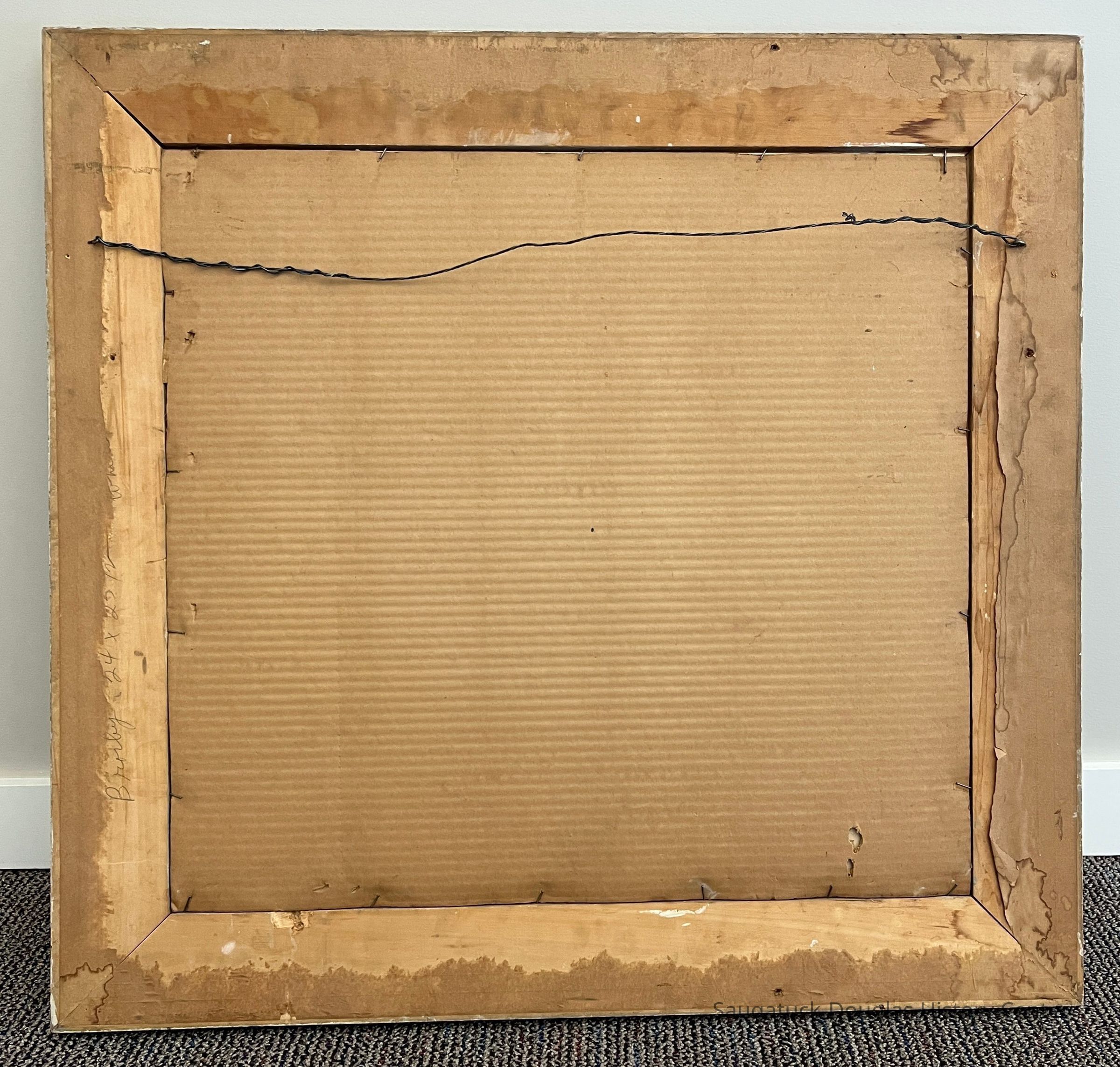 Painting has detached from mat and is slipping down. The frame is backed with cardboard which is browning with age.Interpretative Labels