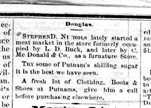 Dyer C. Putnam was a founder of Douglas. [See Person profile.] The D.C. Putnan store was one of two general stores in 1872, the other bring Thos. Gray.
