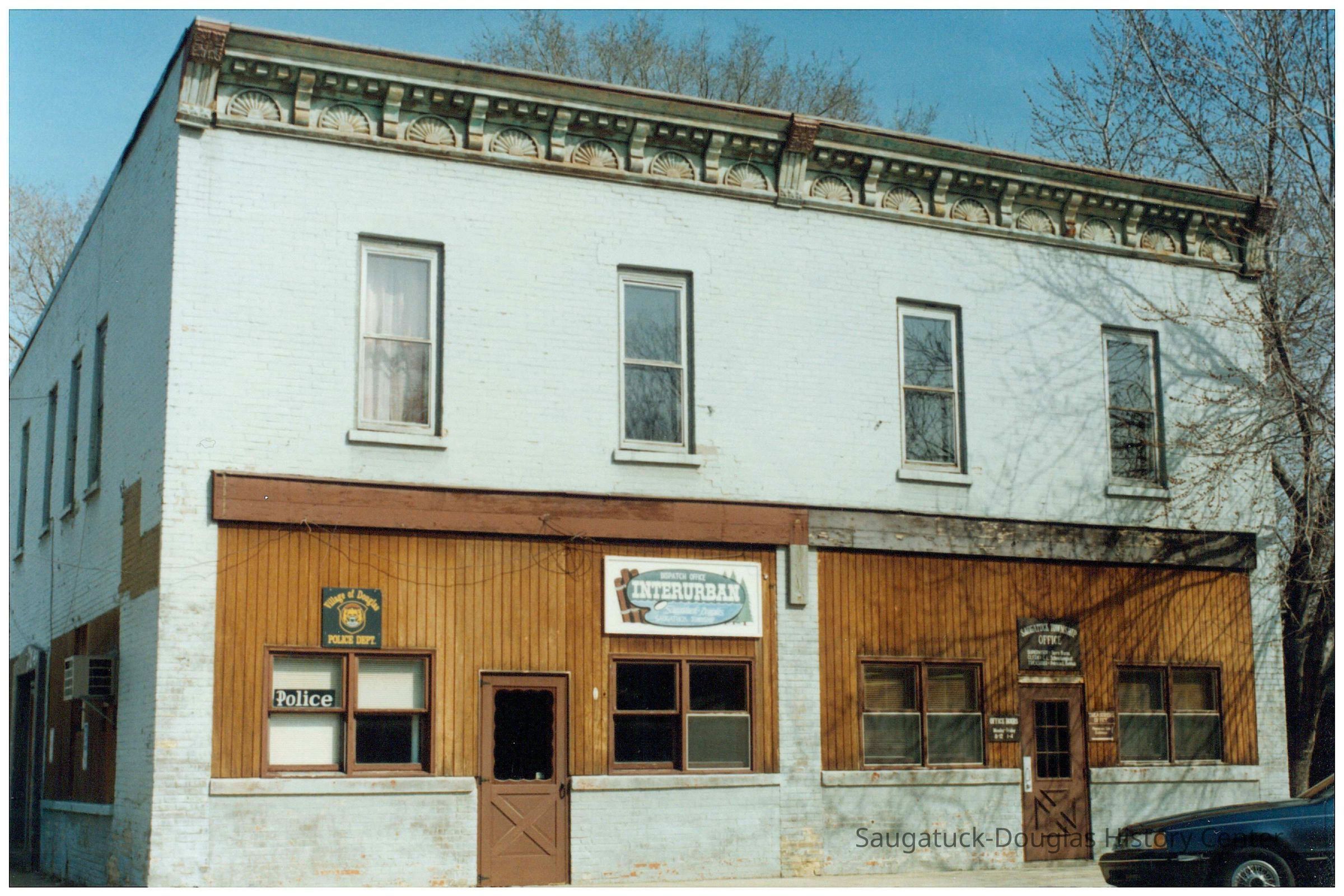 This building was built by Daniel Gerber in 1890. The structure has served many purposes including as the L.W. Mc Donald's Peoples Store (c1912), the St. Peters Catholic School and Convent (1951-1968) and the Saugatuck Township and Interurban Offices (1982). After a major restoration as the Douglas Towne Centre, the two commercial units at street level have housed a series of boutiques and galleries including the Whitlock Gallery, Edwards Ltd, The French Cottage (one of multiple locations), Johnny Blue gallery, Brackett & Co., Cabbages & Kings, Articles Boutique and Endora. The second floor units are residences.Collection