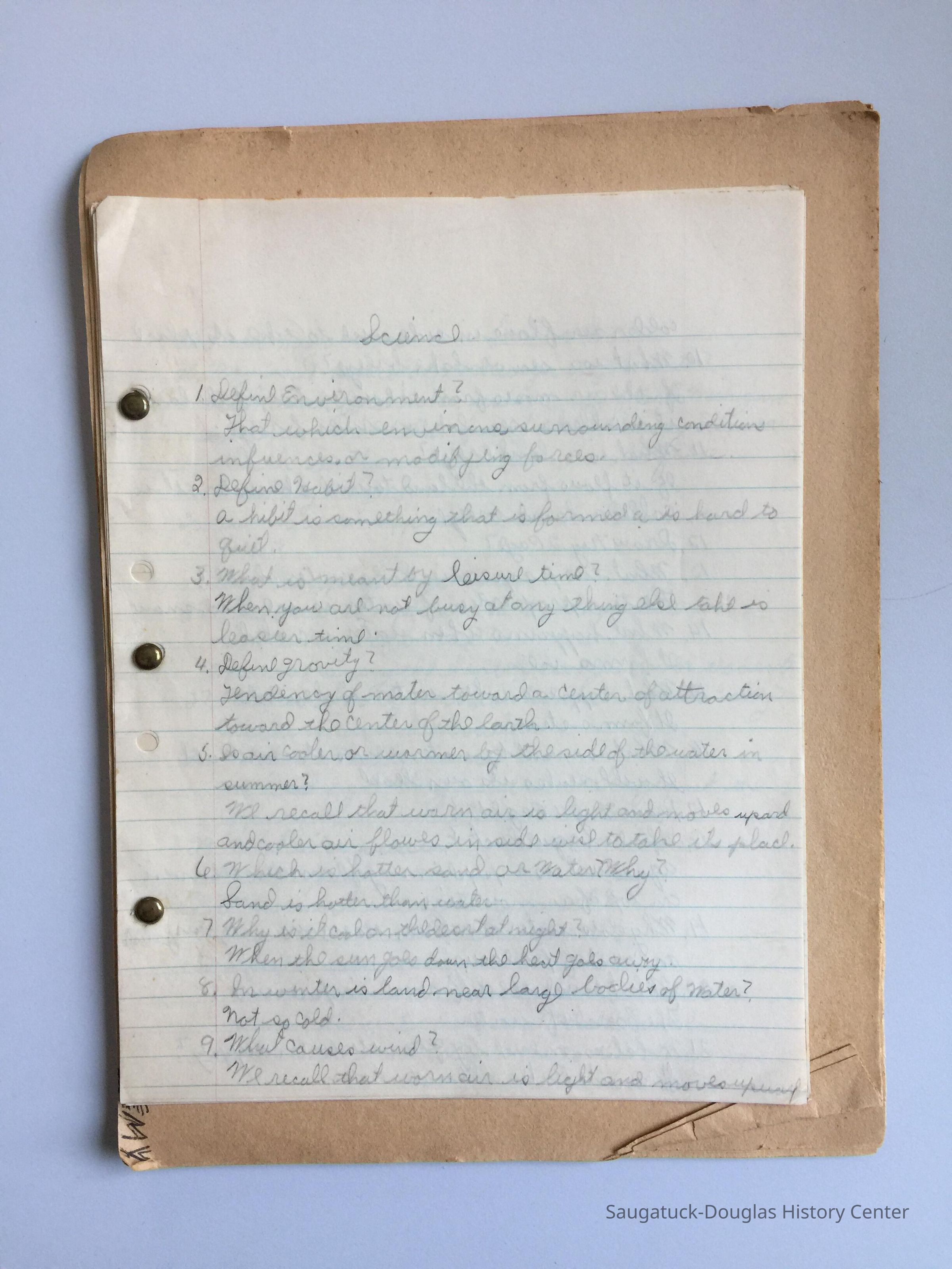 Examples of school work from a Saugatuck High School student in the World War II eraAcquisition