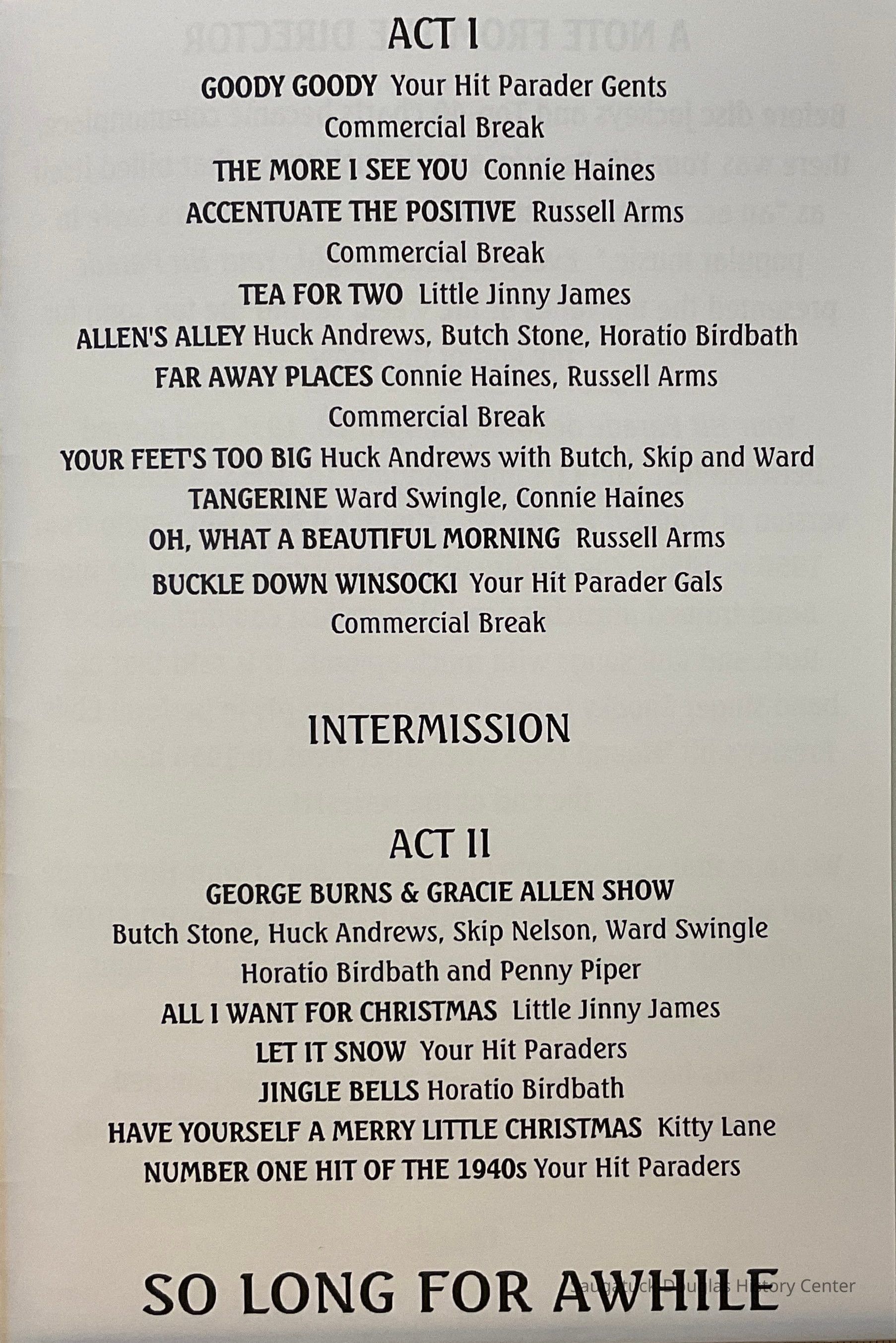 This program from the Red Barn Players is from Christmas 2010 when a program was given at the Saugatuck Brewing Co. titled, Your 1940s Hit ParadeCollection