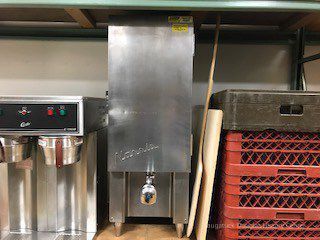 This device allowed workers to dispense milk using only one hand and without having to open the refrigerator, thus keeping the milk at a more constant temperatur. The worker held a cup under the dispenser and use their forearm to lift the weight and dispense the milk. This part was found at the Douglas Root Beer Barrel when the building was being restored. The barrel served milkshakes.Collection
