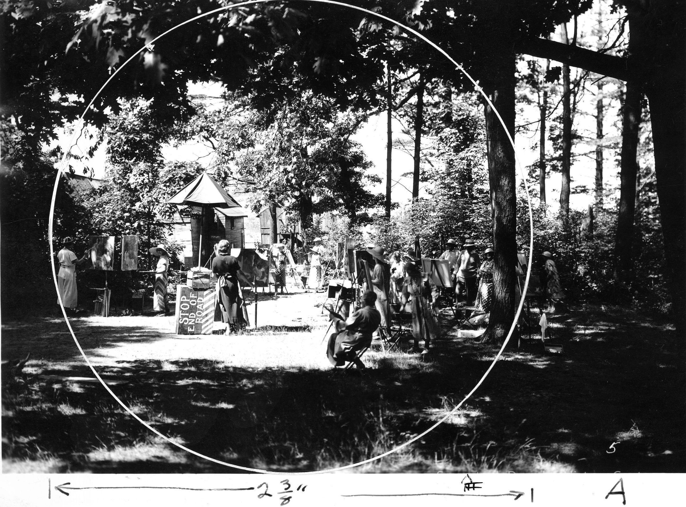 Digital images of art students painting plein air at Ox-Bow in the early period of the school. Also photos of class members lined up, ready to march out to their painting location, and individual artists at work.