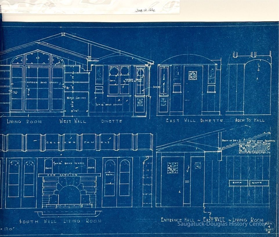 This blueprint booklet consists of six pages, page 2 is missing. Each page features detailed drawings for the studio/residence. They include measurements and some materials to be used in the building . This is Plan #4 of this studio/residence.Collection