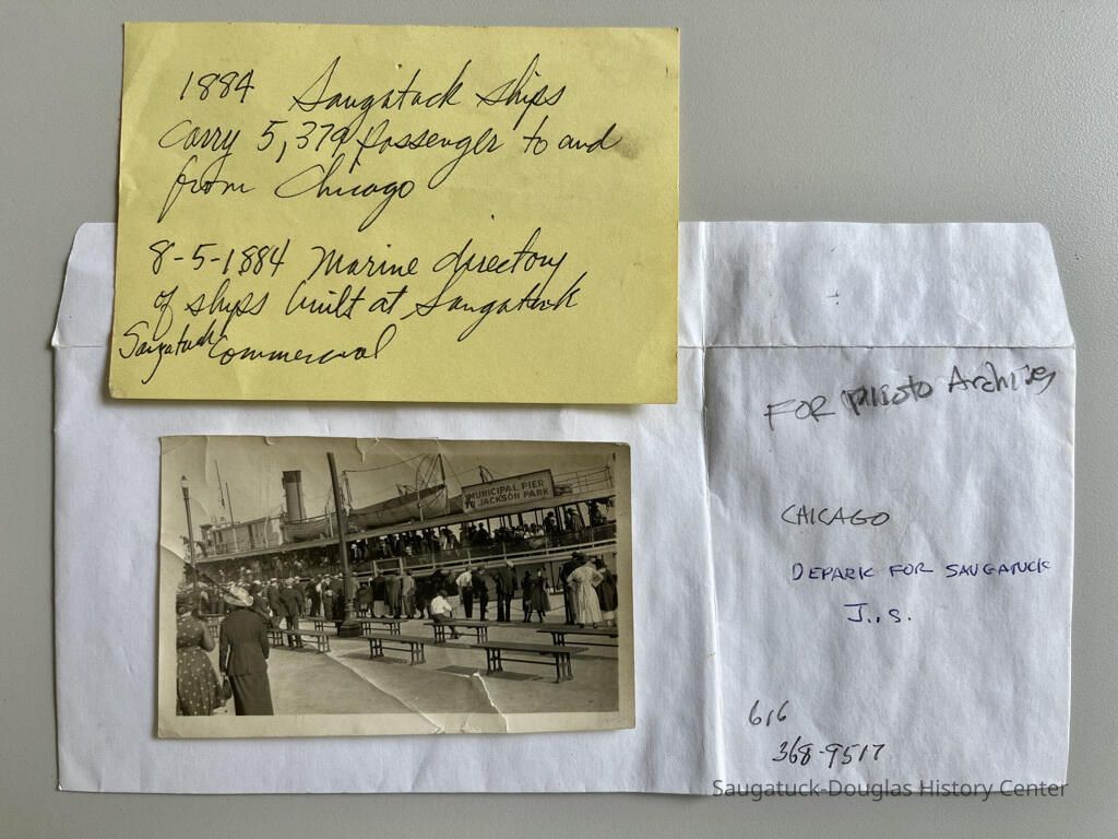 Photo of passengers loading onto a excursion boat marked "Municipal Pier to Jackson Park"