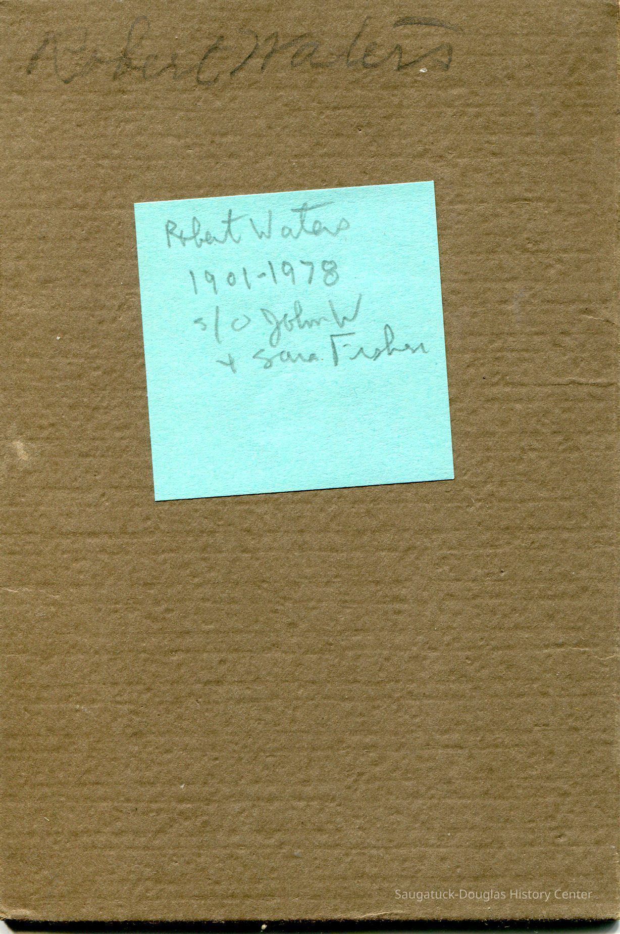 There is a pencil scrawl on the back of the photo. Robert Waters is written on the back of the portfolio. A green post-it note adds that Robert Waters (1901-1978) is the son of John W. and Sara Fisher.Photograph Details