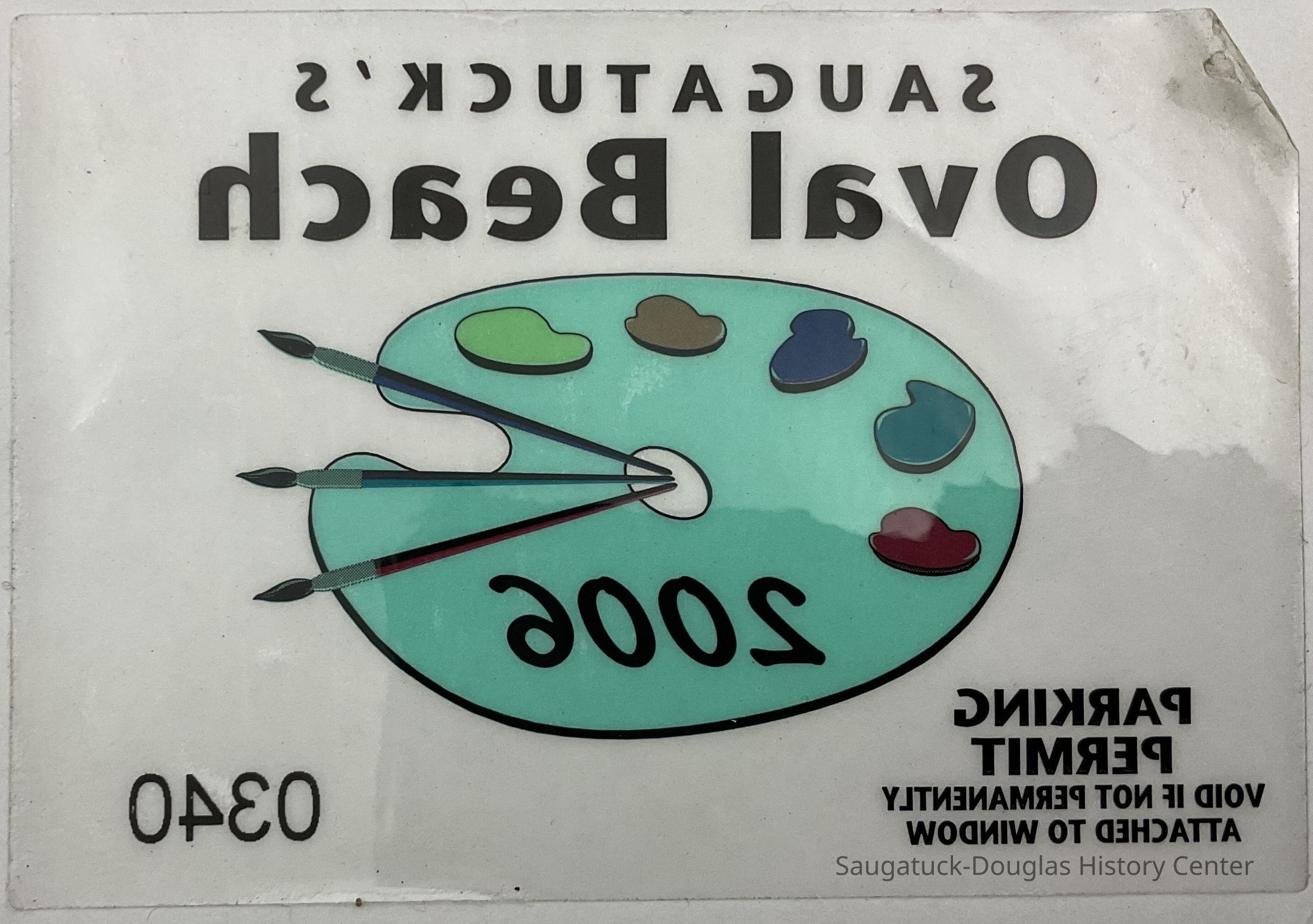 Windshield sticker - Oval Beach parking permit & receipt (payee: Vanderbeck)Collection