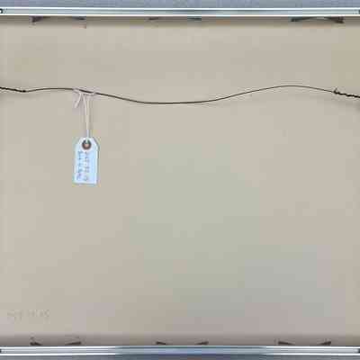 Framed behind glass with a double white and brown mats and .25" silver-tone metal frame. Attached to the glass is a gold-tone plaque that reads "Bert N. Petic, Village of Douglas, 1986"