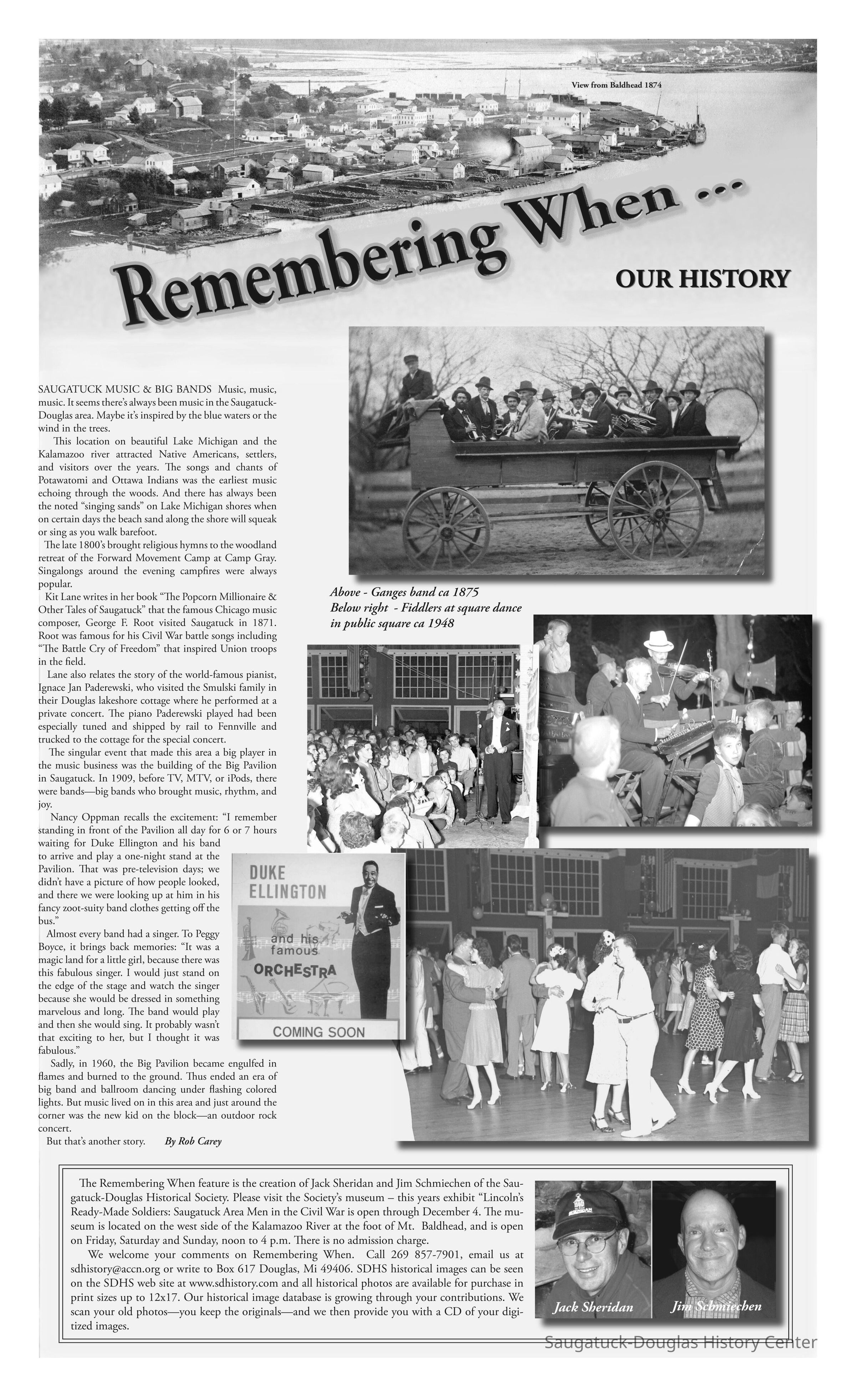 The Local Observer newspaper Remembering When - Our History article titled "Saugatuck Music & Big Bands" LO43