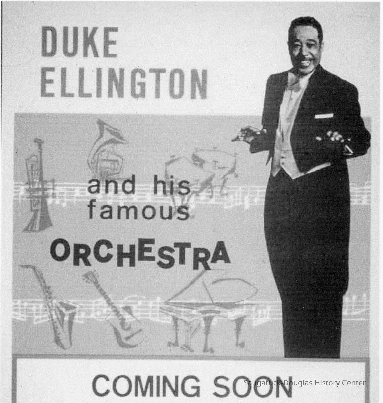 Nancy Oppman recalls the excitement: “I remember standing in front of the Pavilion all day for 6 or 7 hours waiting for Duke Ellington and his band to arrive and play a one-night stand at the Pavilion. That was pre-television days; we didn’t have a picture of how people looked, and there we were looking up at him in his fancy zoot-suity band clothes getting off the bus.”