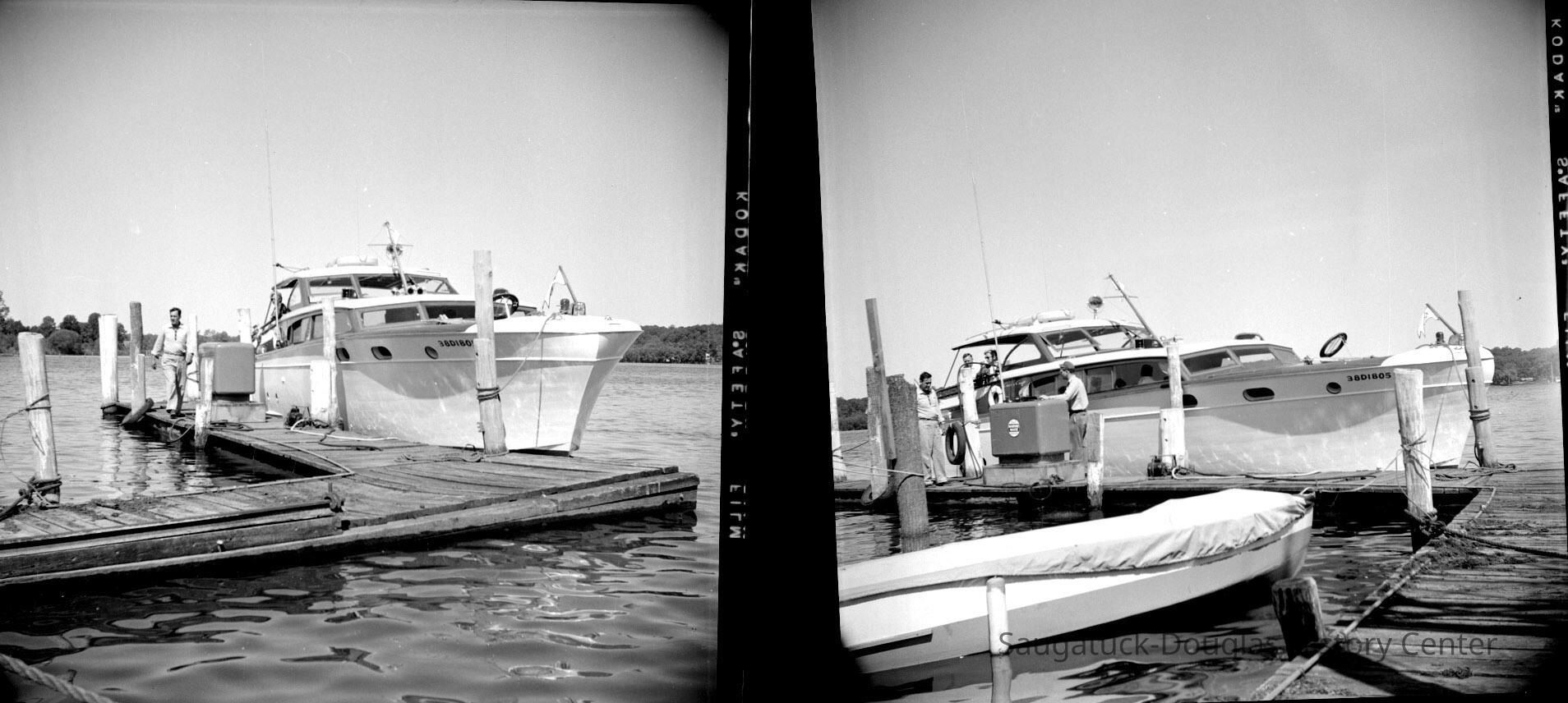 732 0/5 Saugatuck - boats 8/1953 Sportsman docked at Pavilion