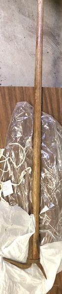 Dual-pointed metal tool with long wooden handle for handling ice..Context