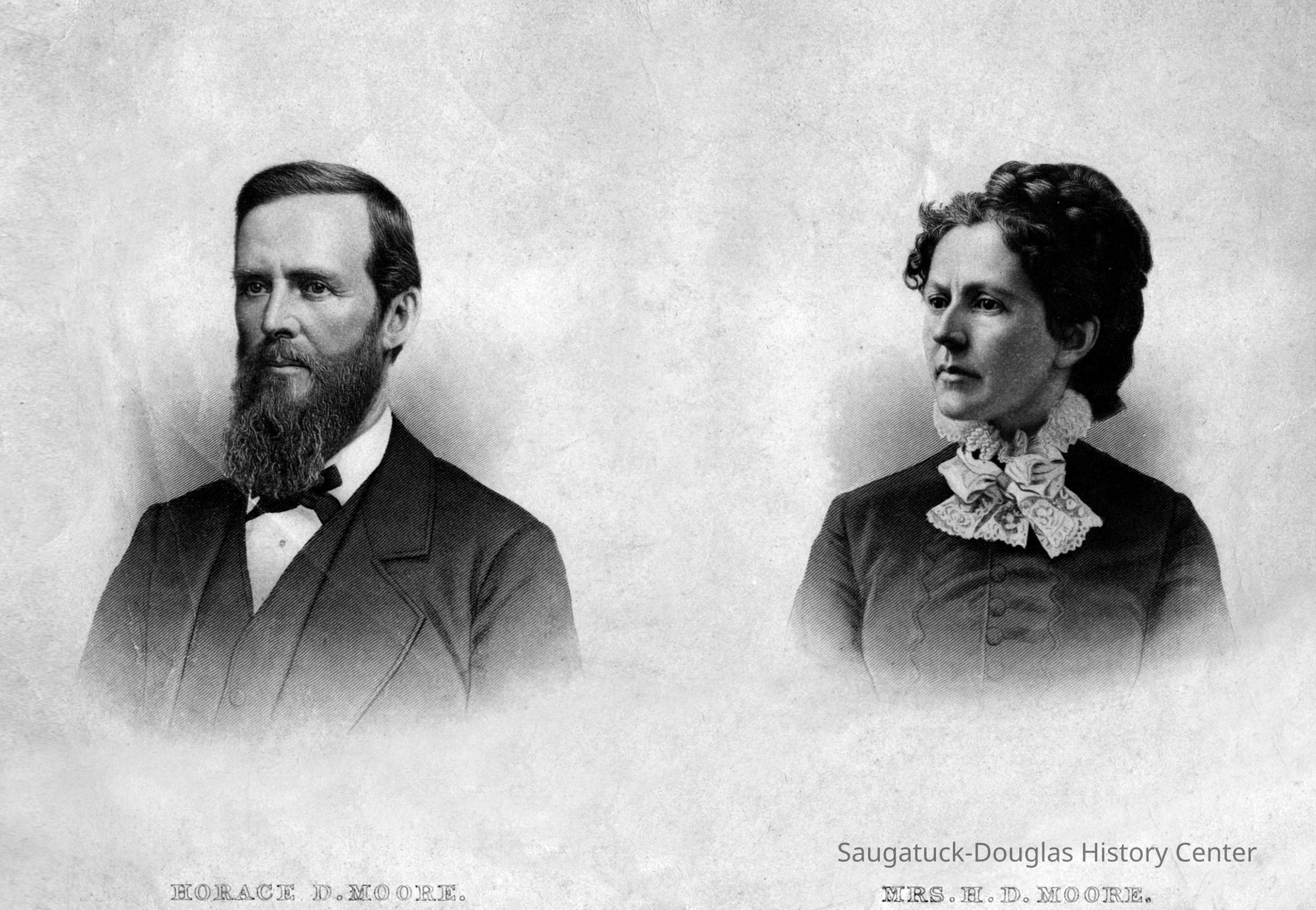 Engraved portrait of Mr. and Mrs. H.D. Moore scanned from the book "History of Allegan and Barry Counties, Michigan" Crisfield Johnson, D.W. Ensign & Company, 1880 [see 2019.35.105]Photograph Details