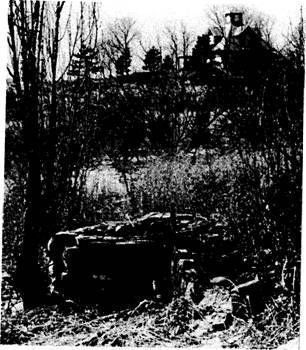 A team from the [2000 "Lost and Found"] exhibition committee out taking pictures for use in this summer's exhibit on ghost towns encountered near the site of old Fishtown, a foundation, what looked like a stone floor, and a fieldstone well. It looked too new to be part of Fishtown in the 1880s so a query was sent to Norm Deam, whose family has owned the nearby lighthouse since 1936 He sent a couple of old pictures along with this reply: