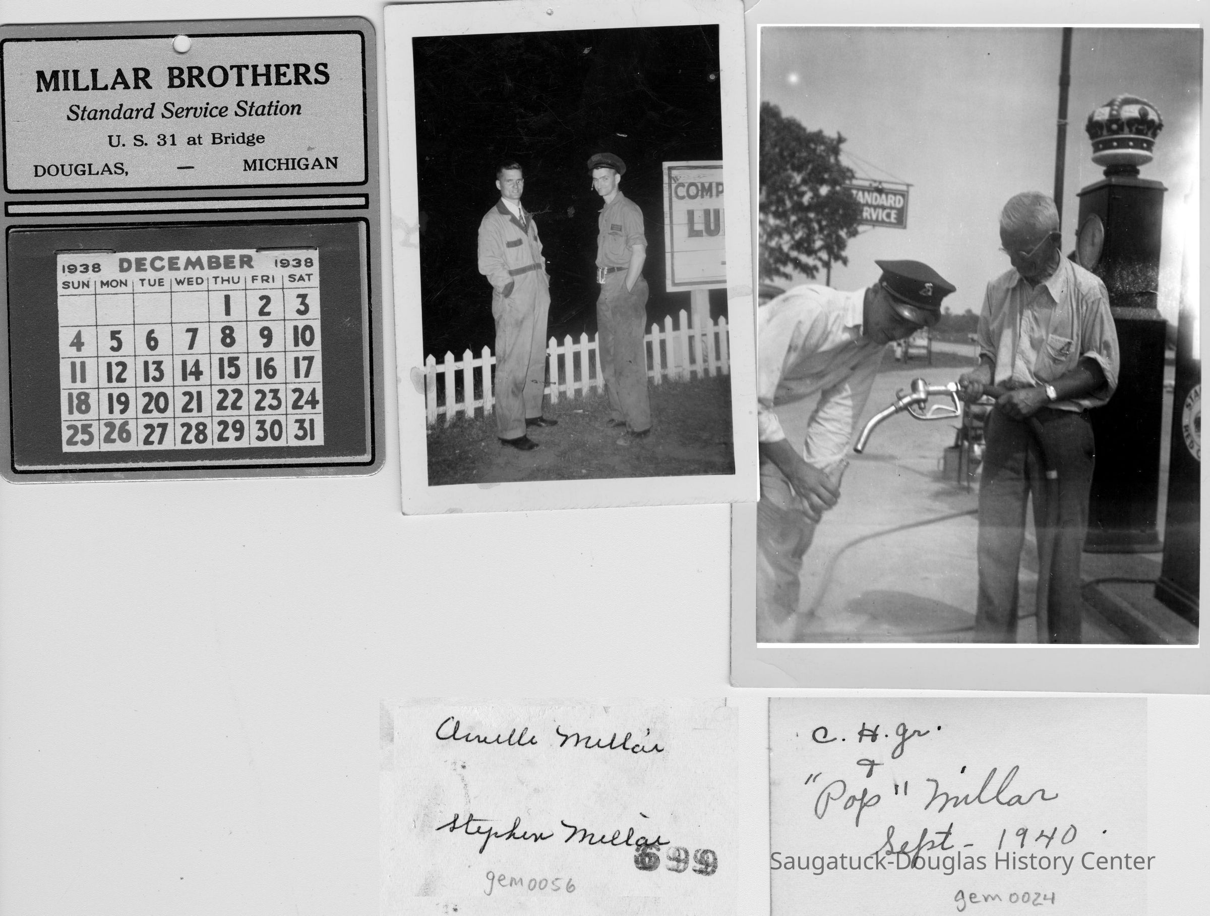 Photos and documents from the Millar Brother Standard Service Station, a beige cube-shaped, glazed brick building at the southwest side of the Blue Star Highway bridge.