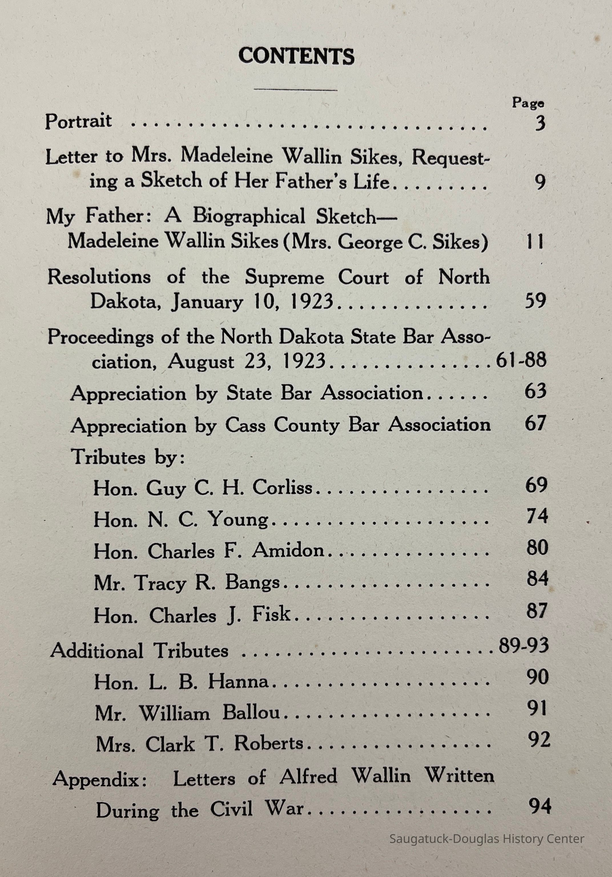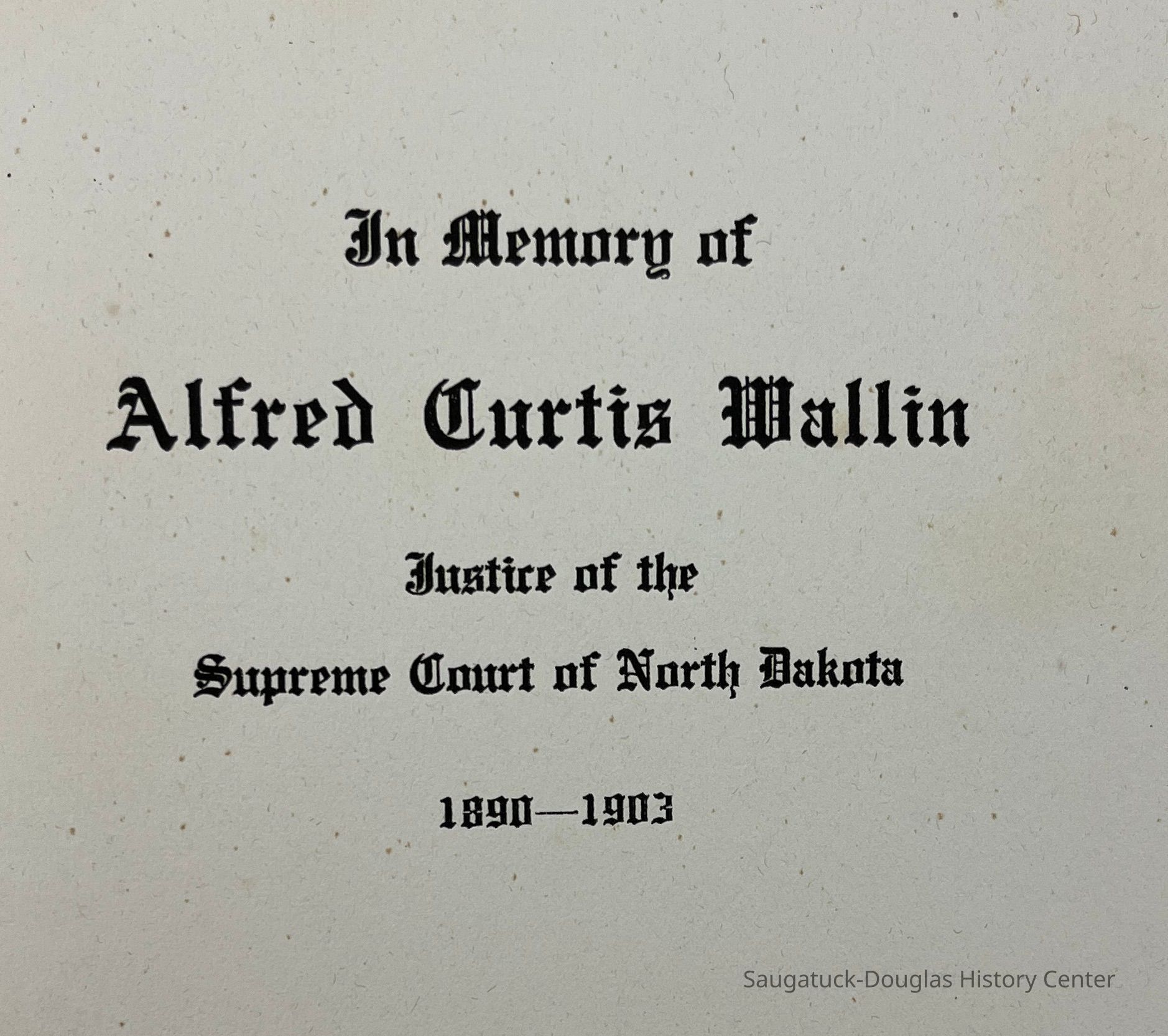 A summary of the life of Alfred Curtis Wallin. 1836-1923 Justice of the Supreme Court of North Dakota. Chapters written by various people who knew him