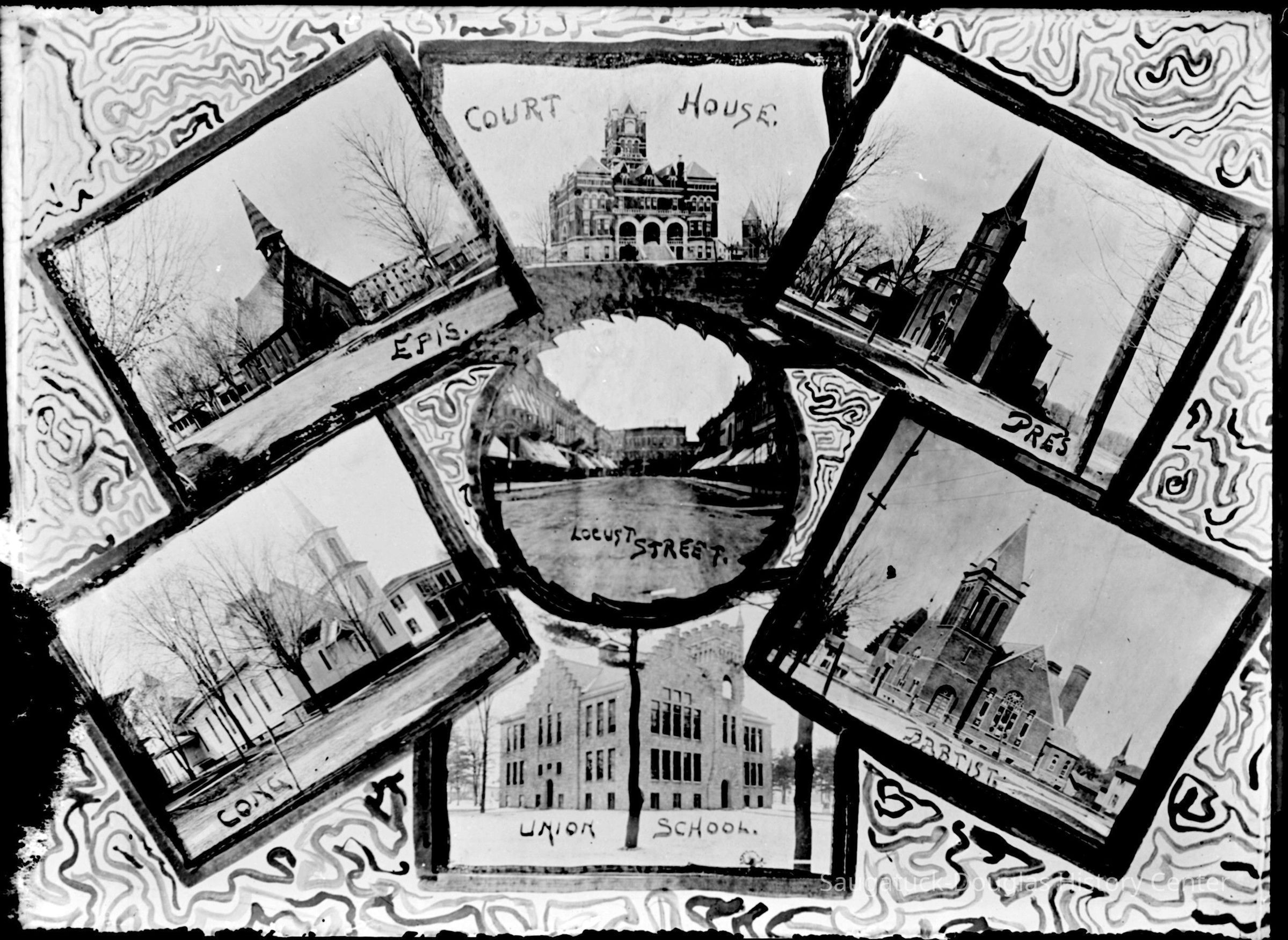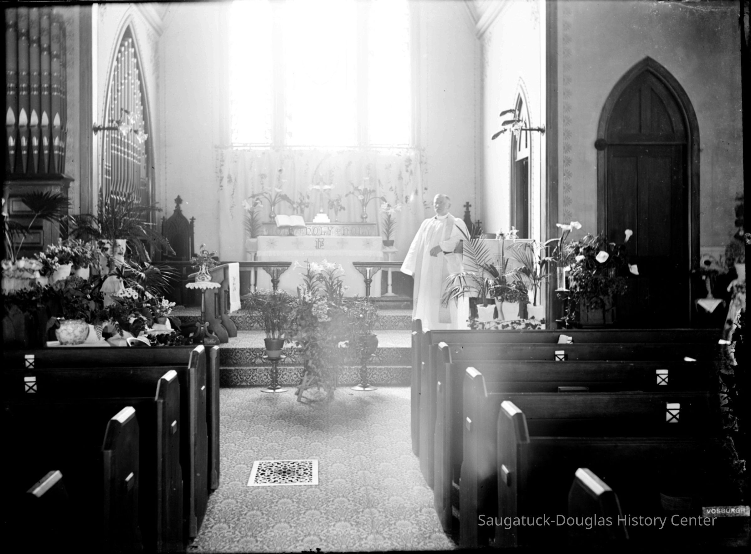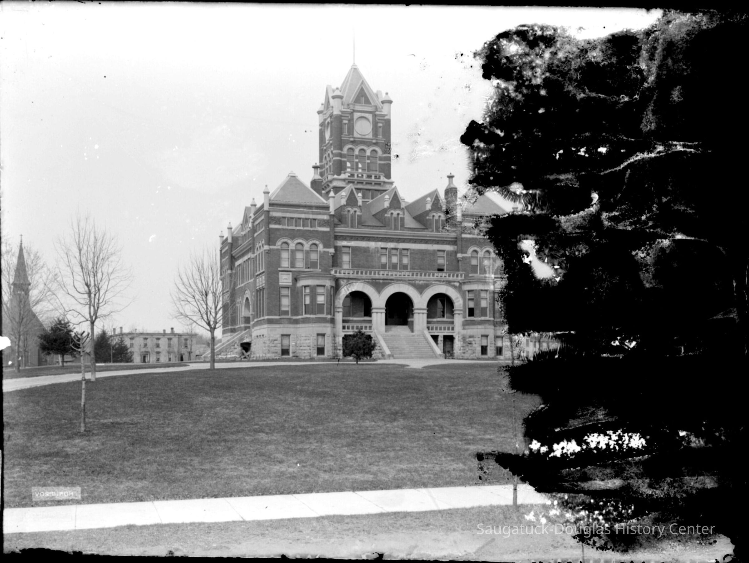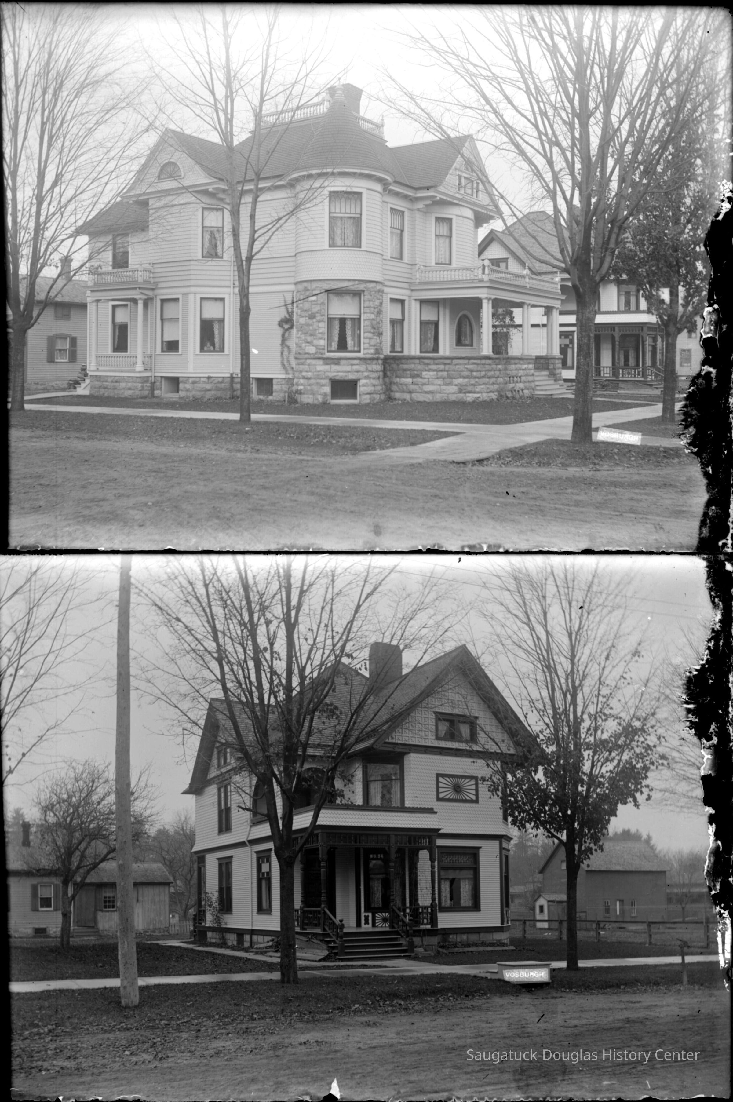 Most images have a rectangular "Vosburgh" imprint in corner. The photos may be the work of William W. Vosburgh, author of "Picturesque Allegan, Michigan" – January 1, 1904, University of Michigan Library.