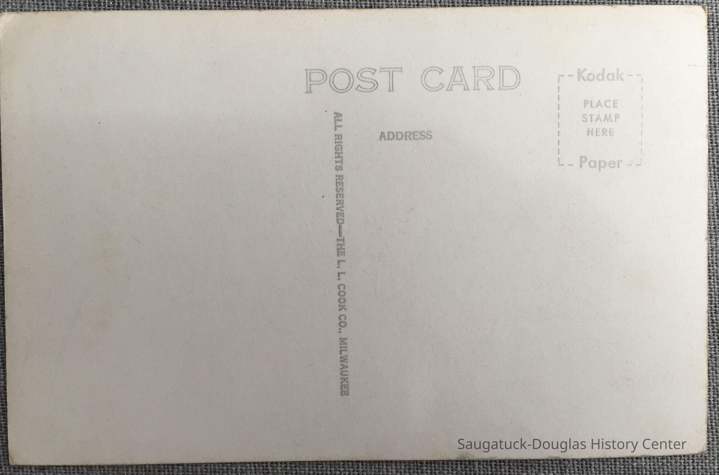 The back of the card is imprinted with "Kodak Paper" around the stamp zone.Subject Person/Organization