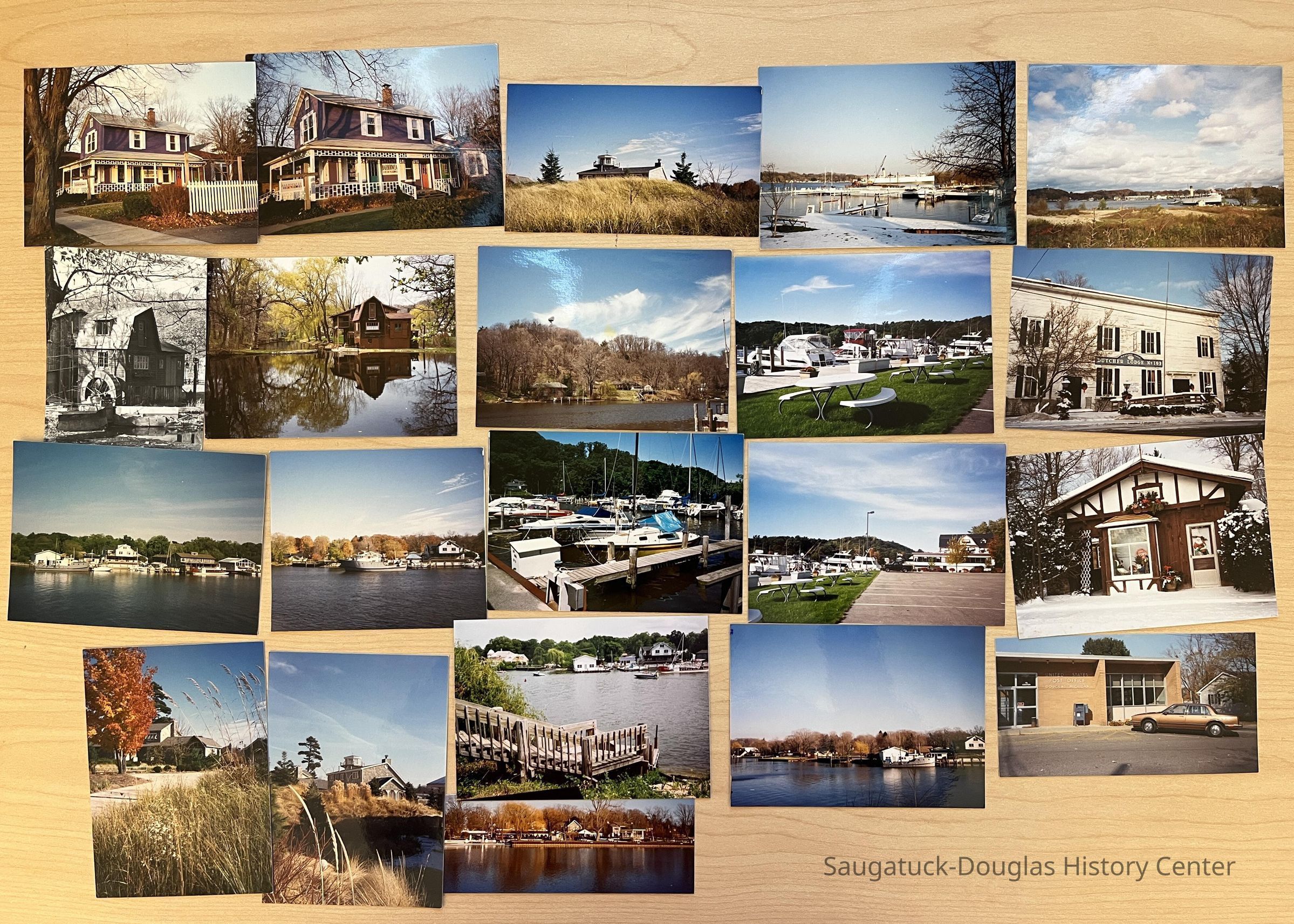 76 photos taken of various buildings and scenes from the Saugatuck and Douglas area.