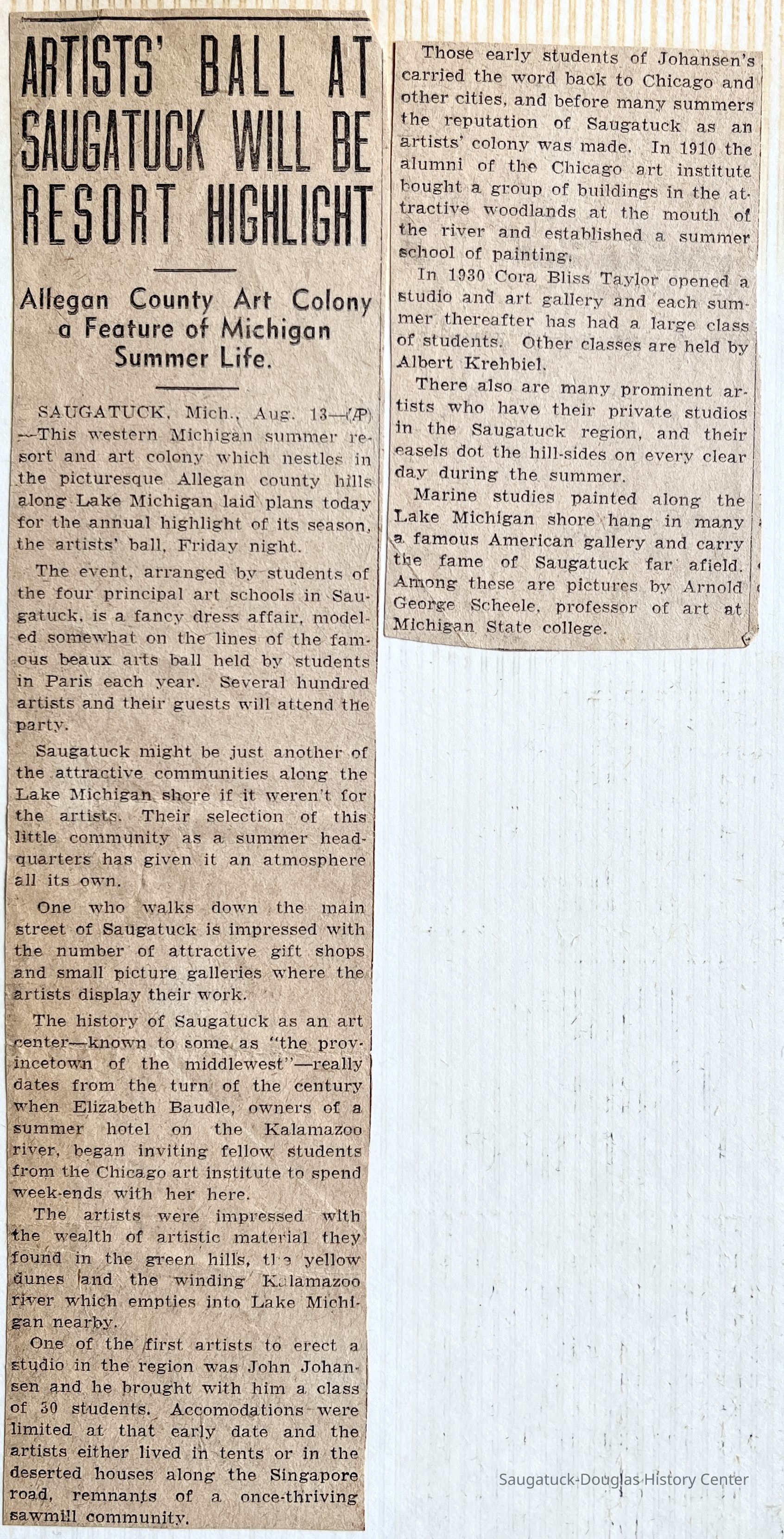 "Saugatuck might be just another of the attractive communities along the Lake Michigan shore if it weren't for the artists. Their selection of this little community as a summer headquarters has given it an atmosphere all its own."Context
