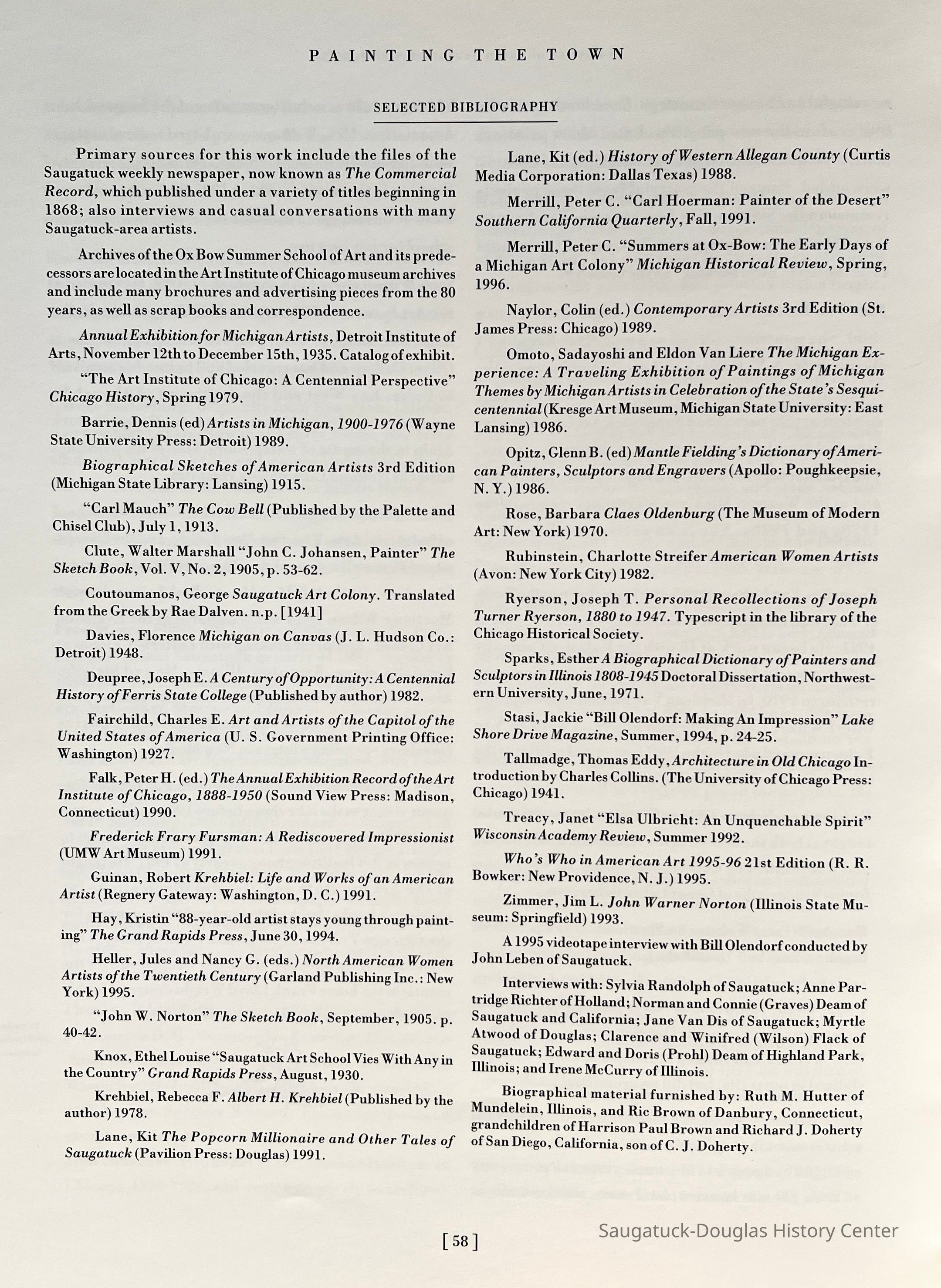 Kit Lane compiled an even lengthier bibliography for Painting the Town: A History of Art in Saugatuck and DouglasCollection