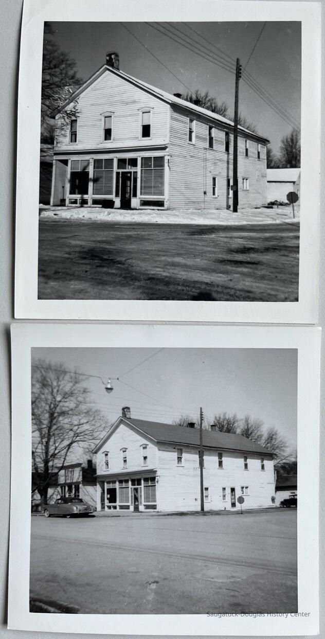 Two black and white photos of the building at the northwest corner of Center and Main street in Douglas. Formerly a grocery store and a long series of restaurants including the Auction House.Photograph Details