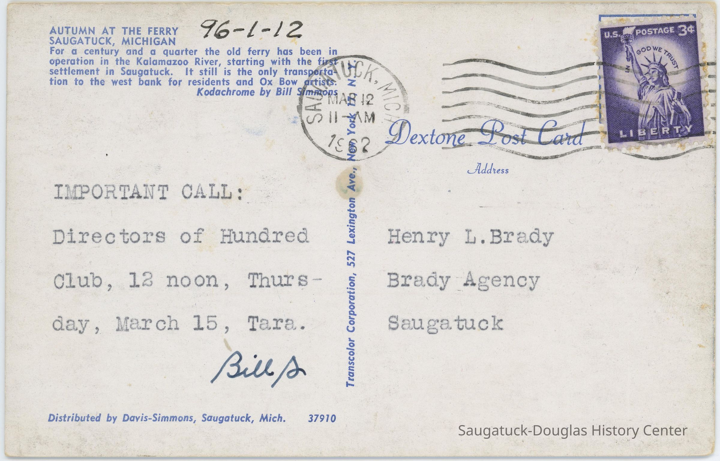 For a century and a quarter the old ferry has been in operation in the Kalamazoo River, starting with the first settlement in Saugatuck. It still is the only transportation to the west bank for residents and Ox Bow artists.