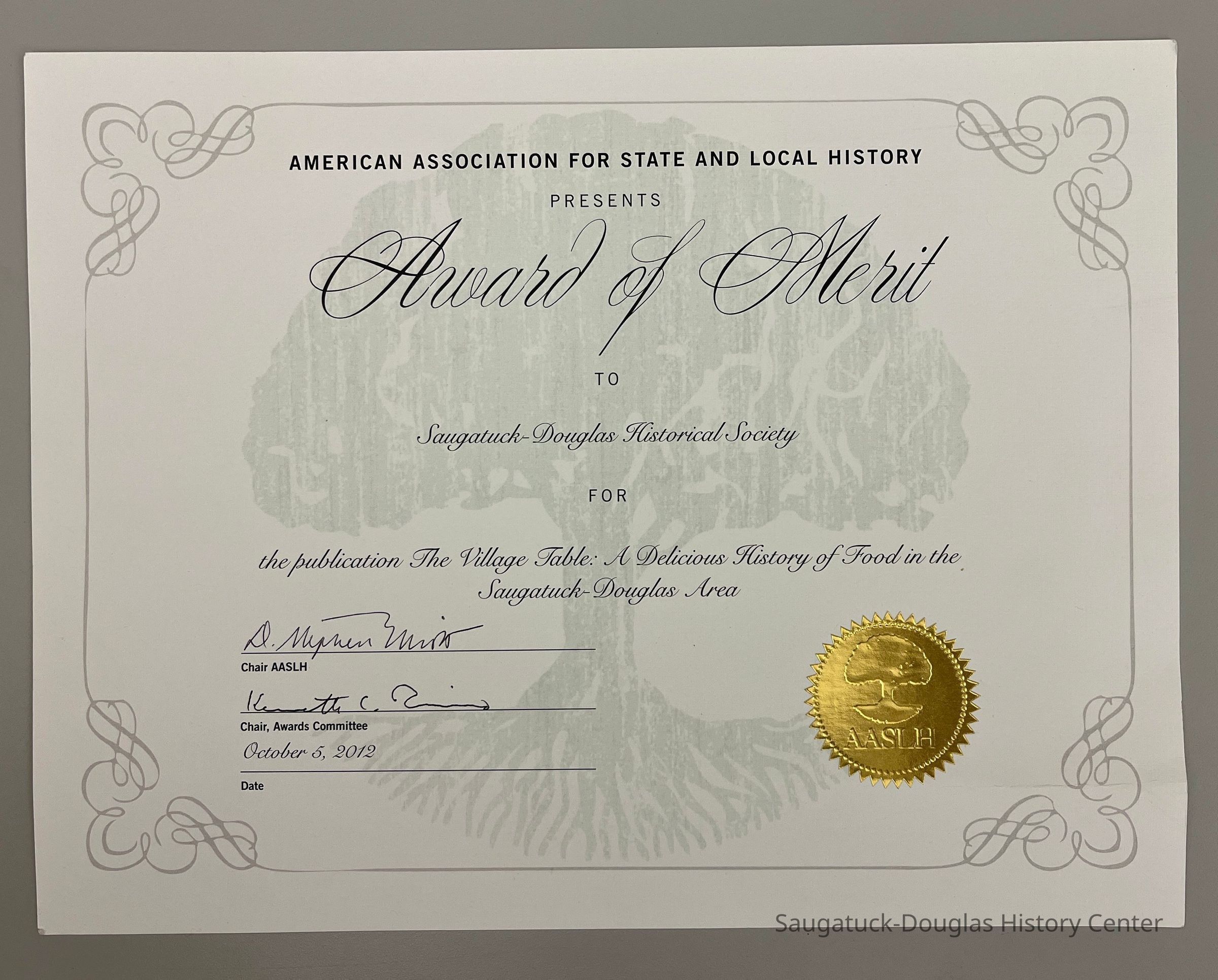 G. 2012 from American Association for State and Local History for The Village Table bookCollection