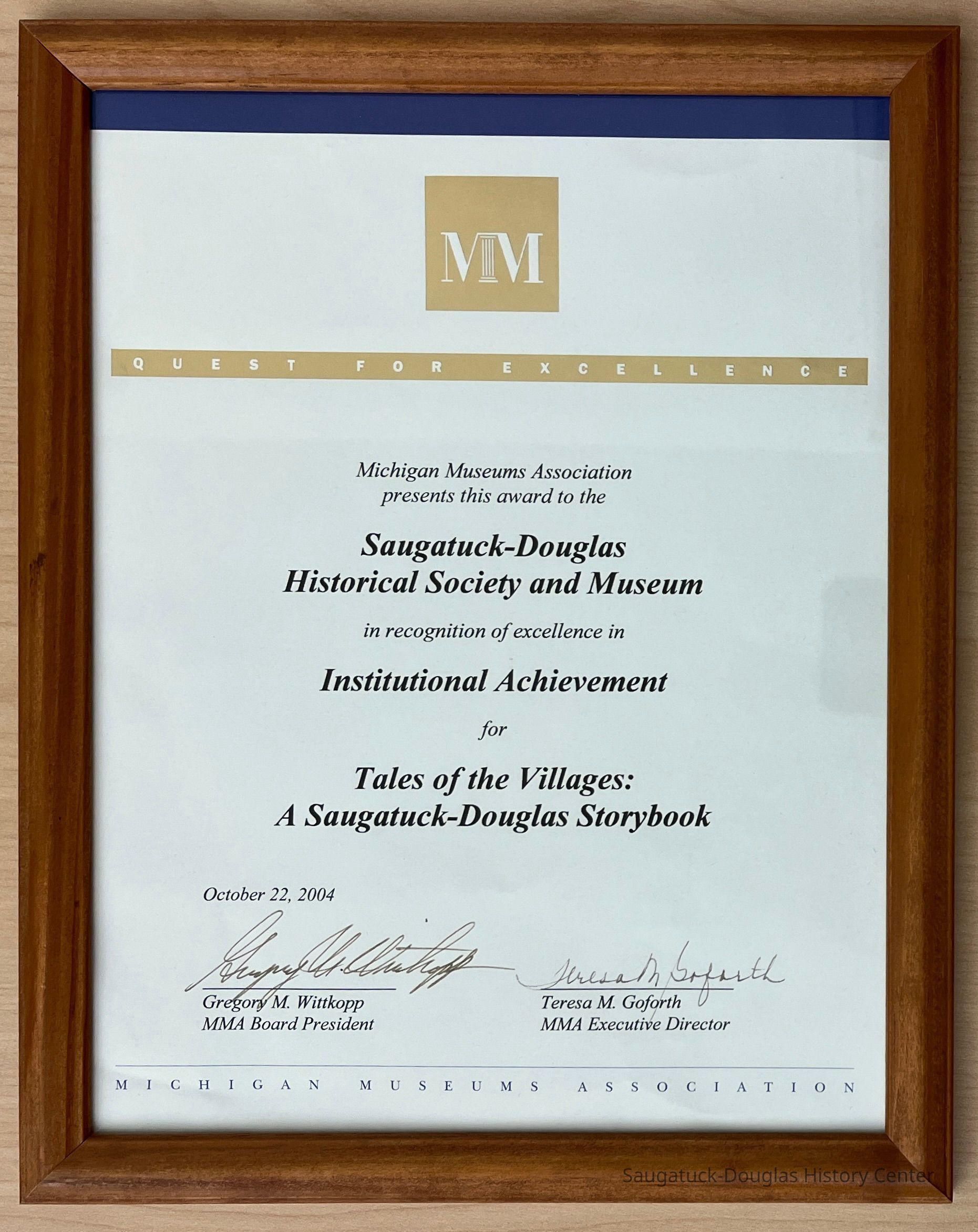 C. 2004 from Michigan Museums Association for Tales of the Villages