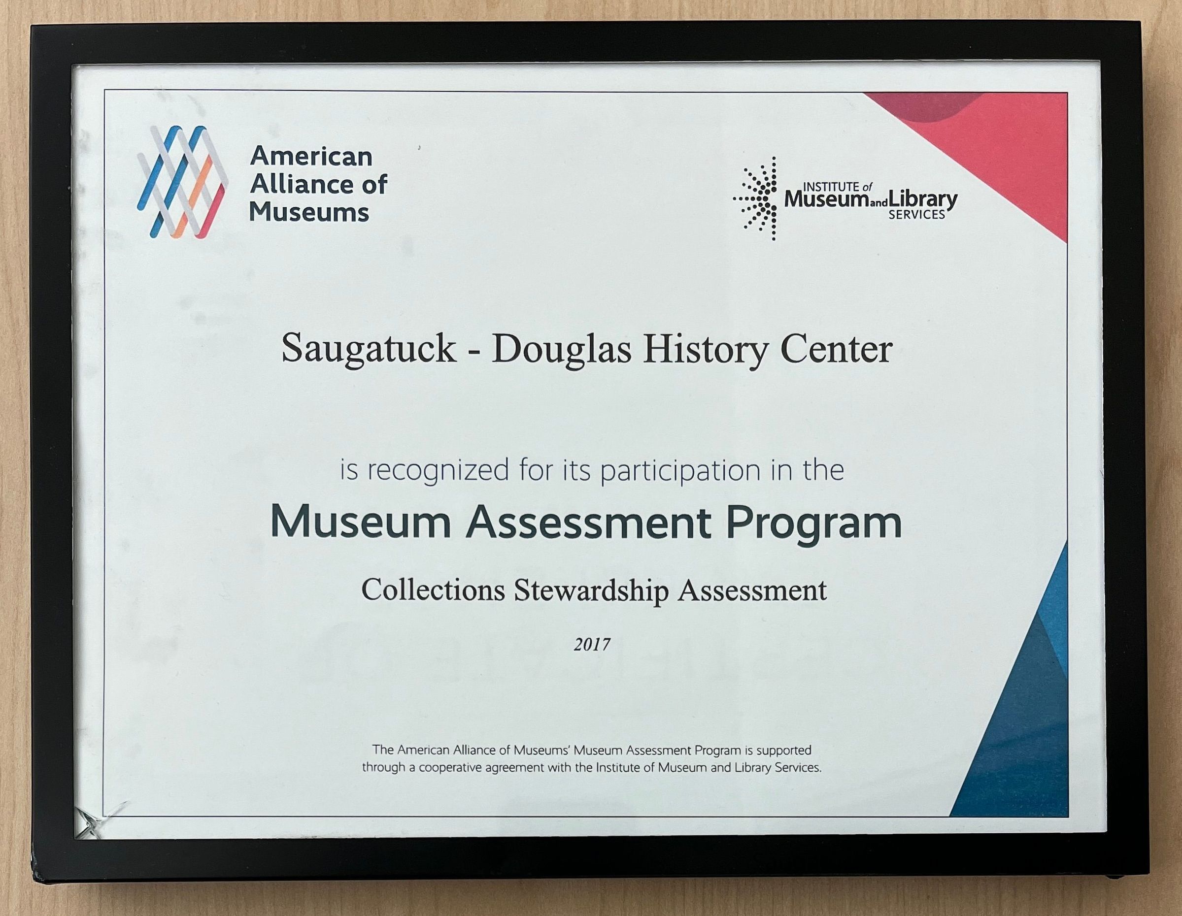 Framed certificates or plaques given to the Saugatuck-Douglas Historical Society/History Center.