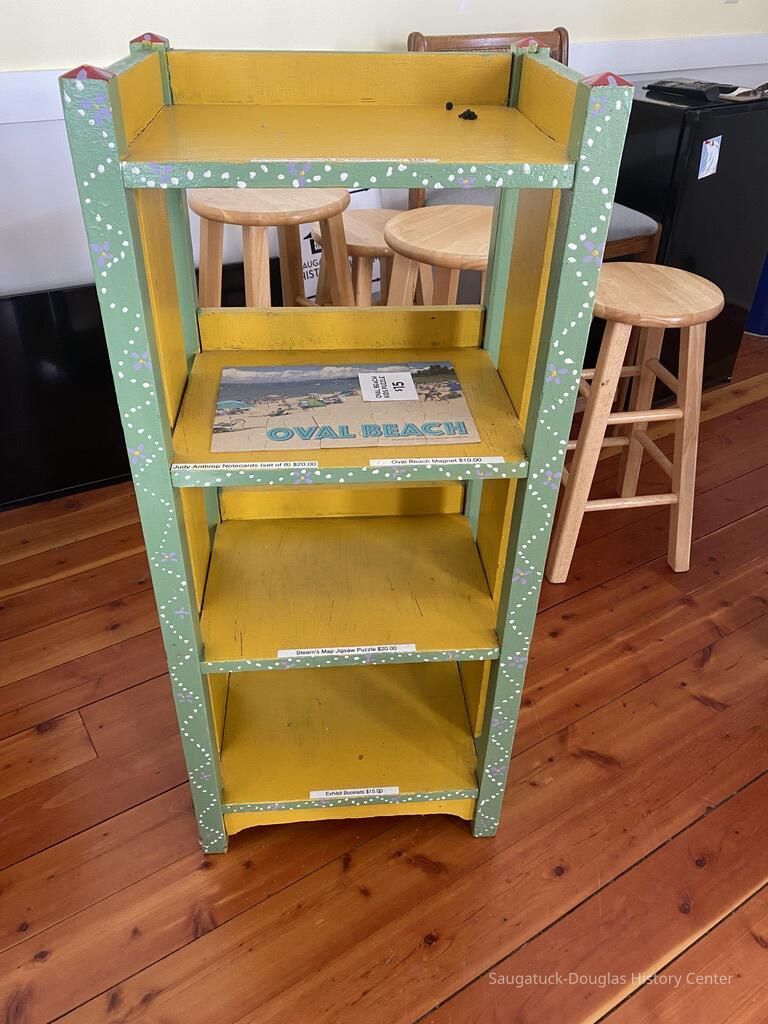 Brightly painted bookcase that was in the arts and crafts building at the Presbyterian Camps.Collection