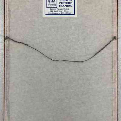 Attached to the back of the frame is a label from Dennis Muzzy custom picture framing.Collection