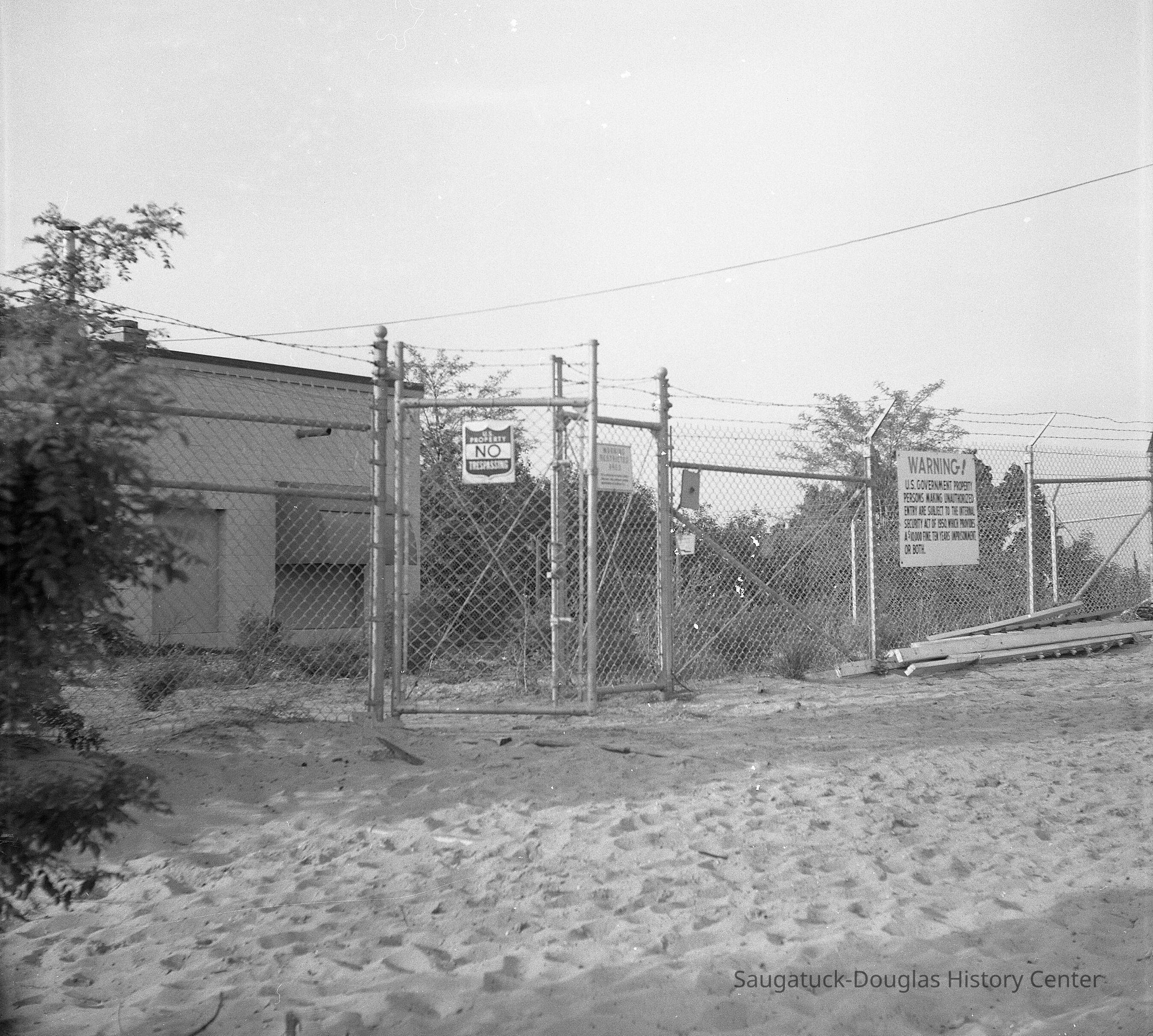 Kit's notes: "003 Radar, view from Baldhead – radar installed in 1956 – part of Aircraft Control and Warning system, Saugatuck Gap Giller Annex PIN 5521. Men stationed there for about 8 years. Dome installed in 1964. Deactivated in 1968. Closeup"Collection