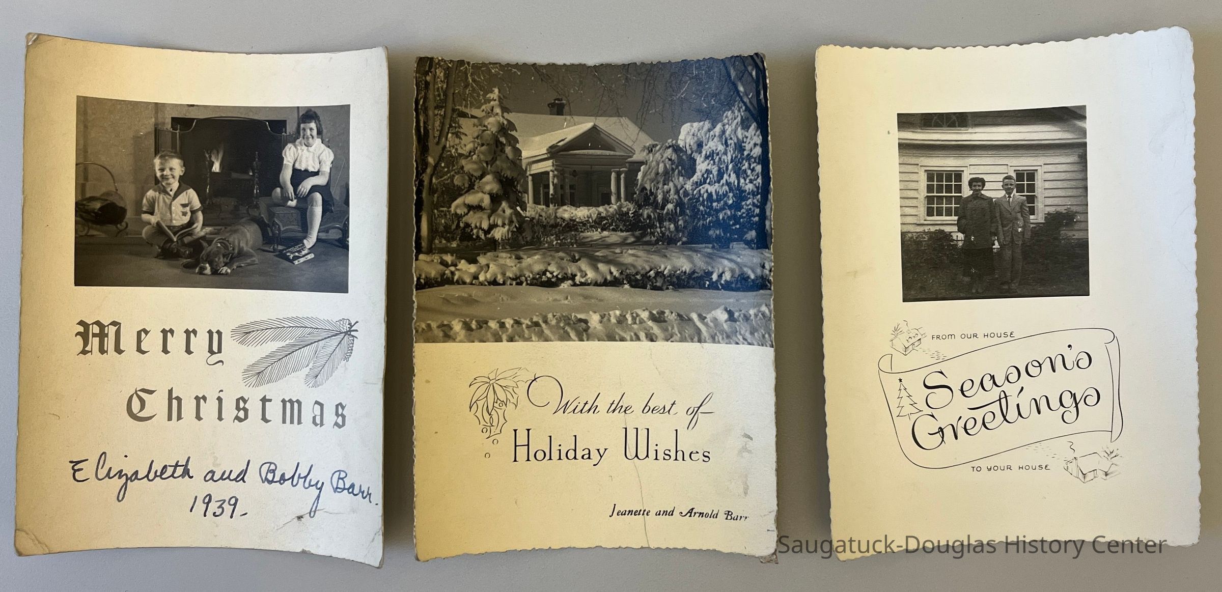 Three Christmas photo cards from Jeanette and Dr. Arnold Barr: