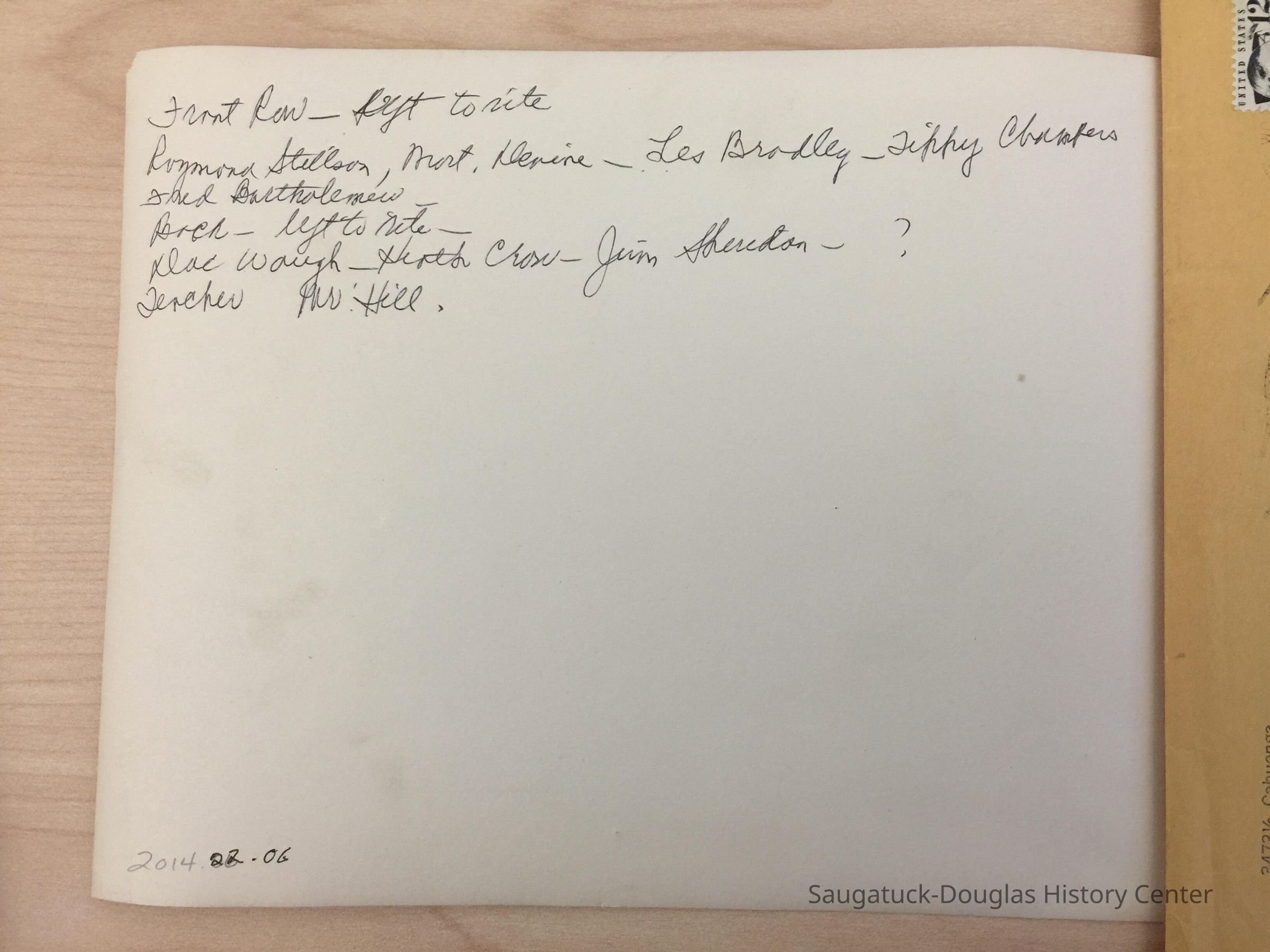 Photo had accession number 2014.22.06 written on back (overwriting another 2014 number) but no number existed in Past Perfect or CatalogIt.