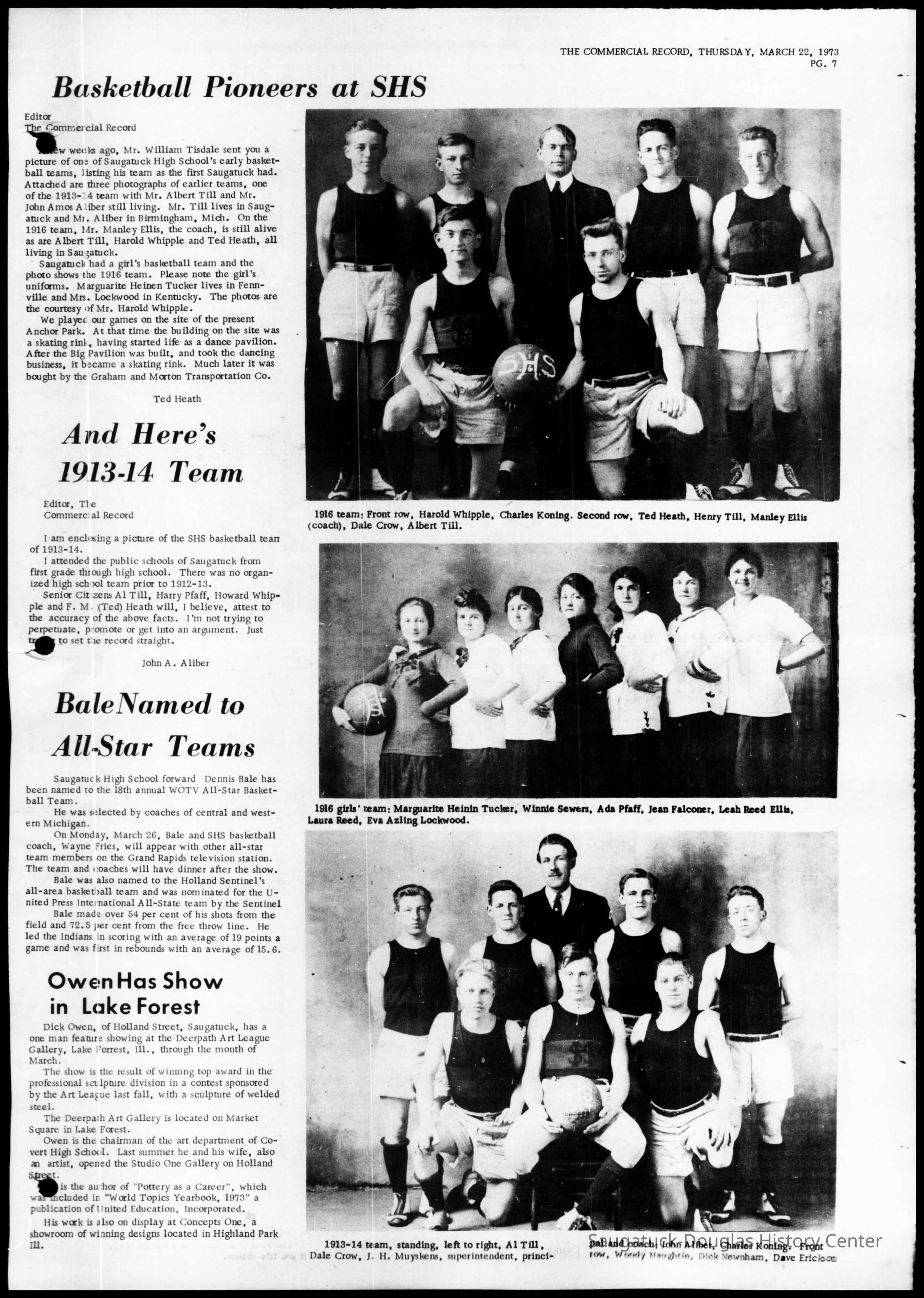 Bud Strader, Noland Shreckengust, Jack Cobb, Arthur Coxford, Monique, Albert Till, Prof. John Muyskens, Bob Breckenridge, George Chase, John Proctor, Benny Hirsh,