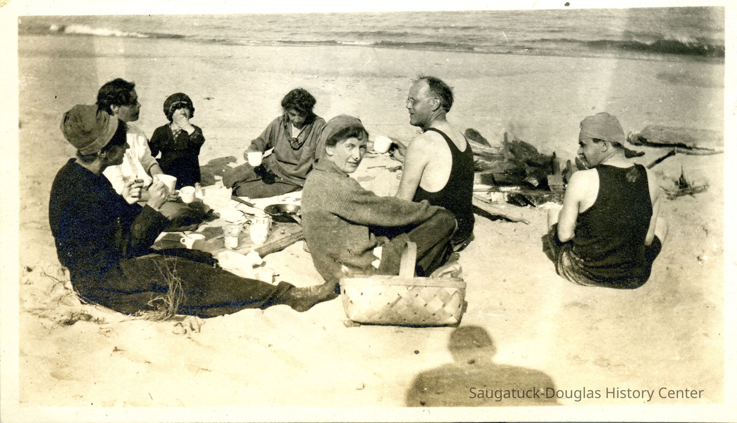 Digital scans of people playing, swimming and having a good time at the Saugatuck beaches prior to the opening of Oval Beach in 1936.Photograph Details