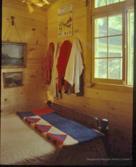 My grandmother had her food transported across Lake Michigan in the steamers and the chickens, hams and bacon were packed in dry ice from Wilson and Co. When the boat stopped coming (there was an interurban train that would take people from Saugatuck to Holland. I traveled on it a few times), anyway my grandmother ordered her food from Wilson Co. and Libbey Co, and they were sent by freight to Fennville and my Uncle John would drive over the river road to Fennville and she'd stop at farms along the way and pick up her vegetables, melons and cherries and peaches. She made pies in the big coal stove, she never made cakes, she did make biscuits for strawberry shortcake. Her meals were simple home cooked fare. She charged $2.00 a day for the meals and she told me it cost her $1.00 -- can you imagine $2.00 a day for 3 meals? We had potato salad for lunch and always a hot dinner with chocolate pudding or JELL-O. On Sunday morning she'd make eggs and bacon. She did have the sheets done at a laundry in Holland and they delivered them each week. She really worked hard.