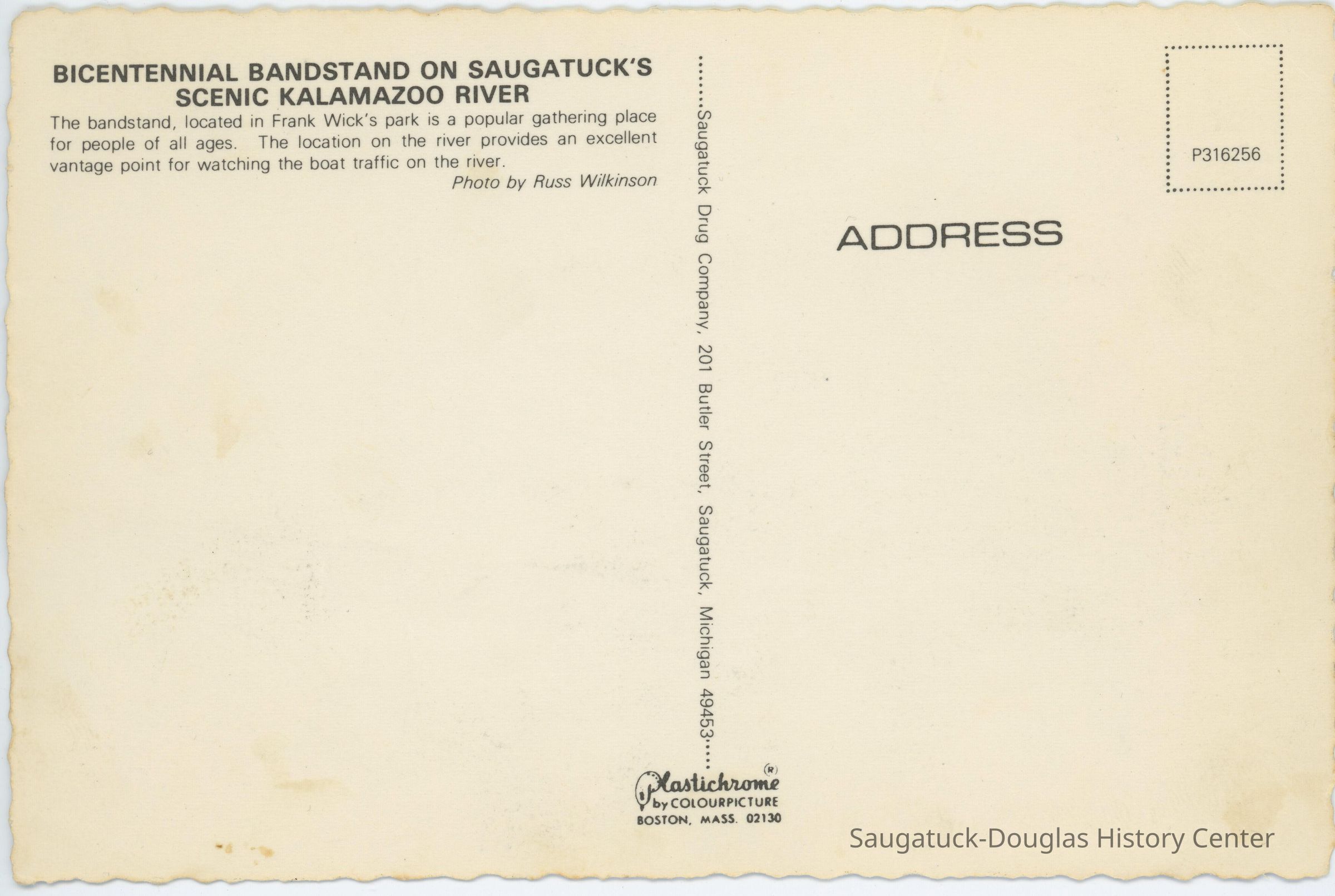 Bicentennial Bandstand on Saugatuck's Scenic Kalamazoo River PostcardEntry/Object ID