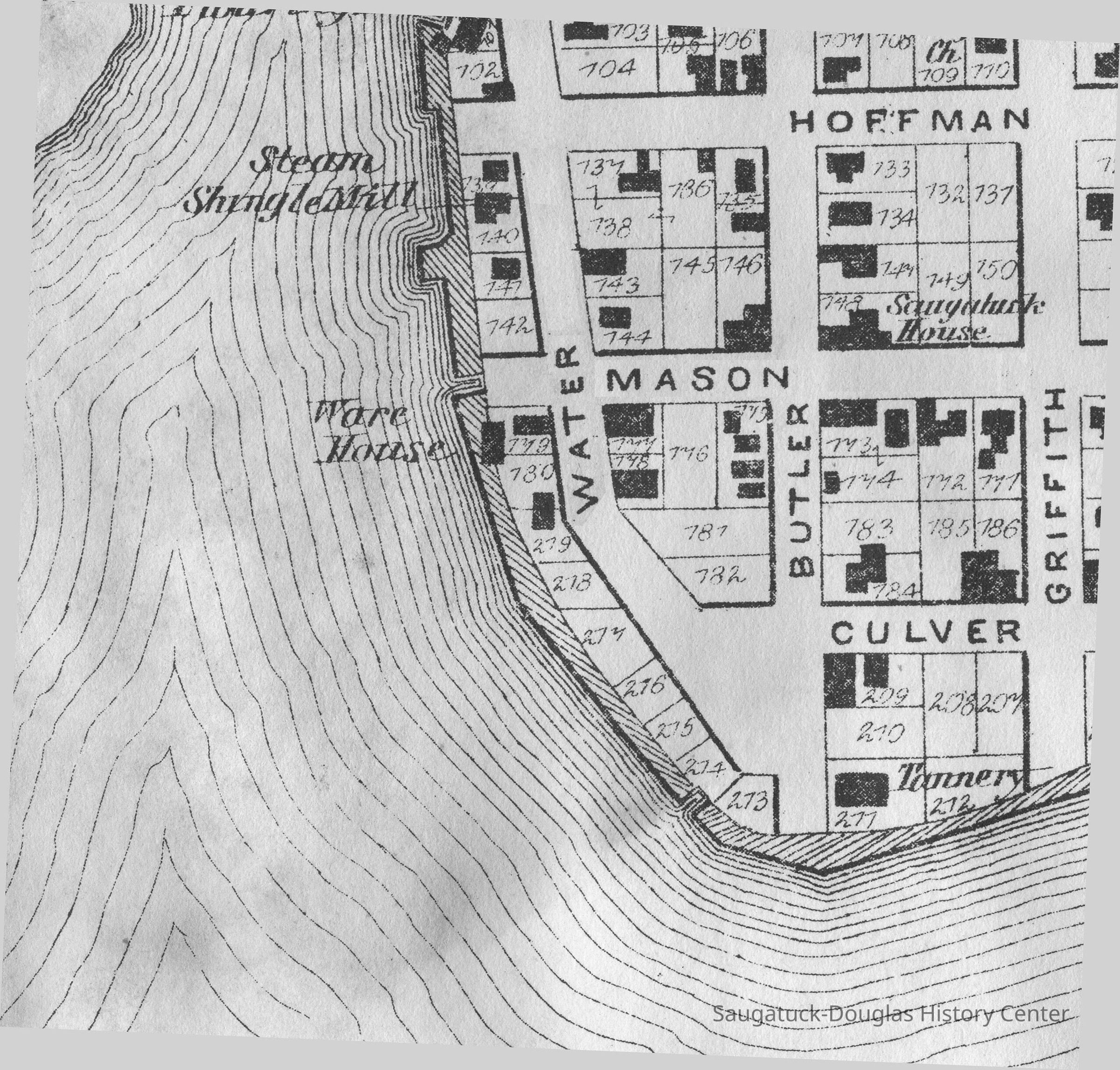 The Saugatuck coal yard property consisted of four city lots in the area between The Butler Hotel (now the Butler restaurant) and Leindeckers (now the Coral Gables). Per the 1907 tax assessment roll this property was owned by H. H. Engle & Co., so he probably supplied capital to purchase the land.